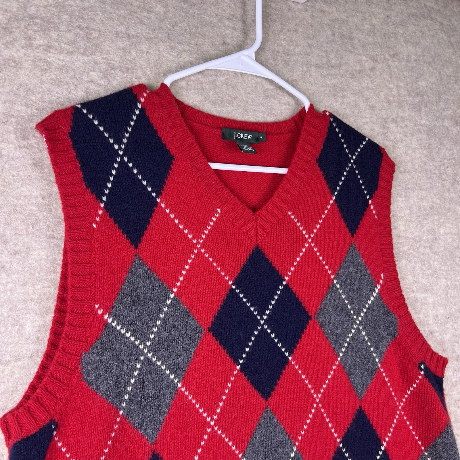 как выглядит J. Crew Lambswool Argyle Red Sweater V Neck Vest Men s Large 90 s Style Classic фото