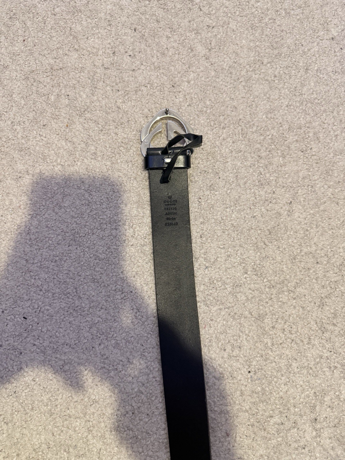 как выглядит Authentic Gucci Belt Black Leather Silver Buckle 100cm фото