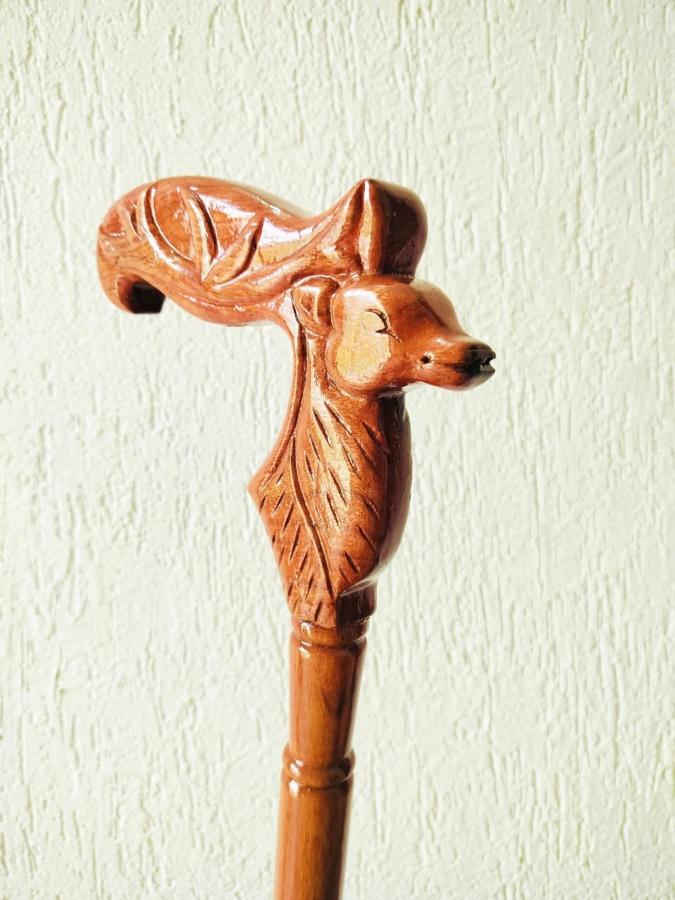 Handmade Wooden Walking Cane, Deer Head Design Good Finishing in Wood Polishing