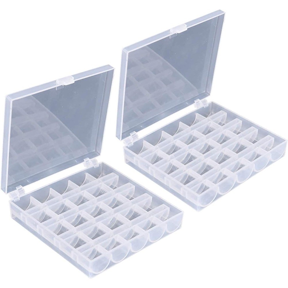 2 Pack 25 Slots Plastic Storage Box for Sewing Machine Bobbins Spools Thread