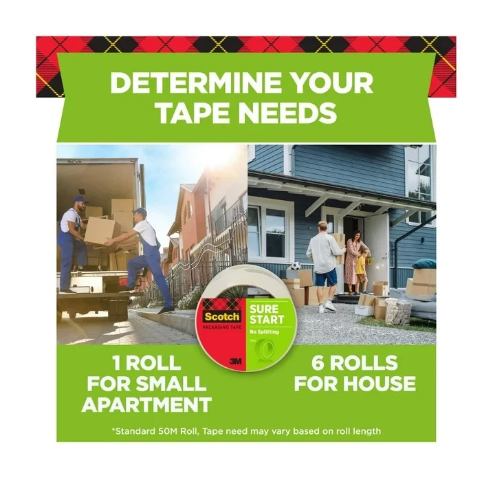 Scotch Sure Start Packaging Tape, Clear, 1.88 in x 54.6 yds, 8 Rolls