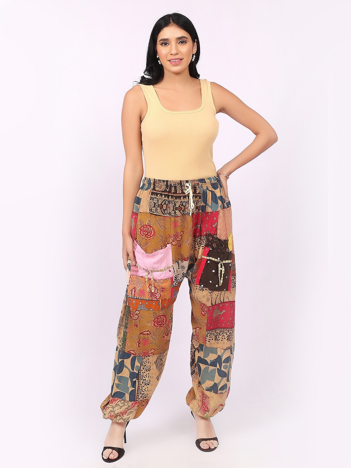 Women's Casual Printed Patchwork Pocket Trouser Harem Pant Wholesale Mix lot