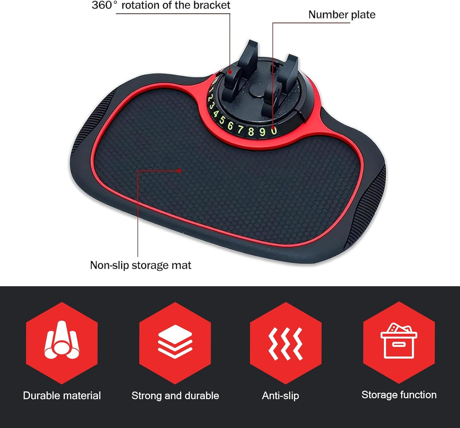 1 PC Multifunction Car Anti-Slip Mat, Anti-Slip Rubber Dashboard Storage Pad and