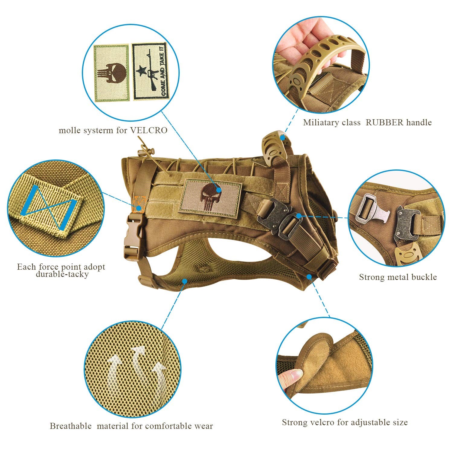 Tactical Service Dog Vest Harness K9 Military Molle Dog Vest for Outdoor Trai...