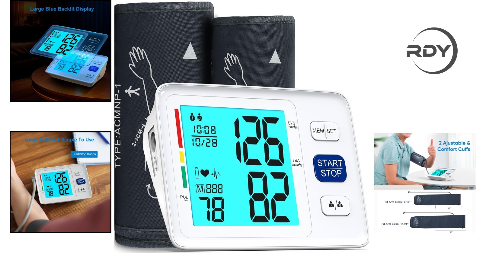 Особенности: Automatic, Digital, High Accurate Algorithm, Adaptive Pressure Control, Backlit Display, Large LCD Screen, Oversized Buttons, Easy to Use