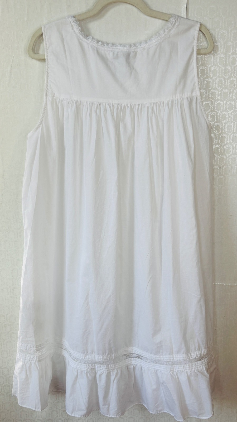 как выглядит NEW EILEEN WEST WHITE COTTON PINTUCKED LACE TRIM NIGHTGOWN SLEEVELESS SHORT L фото