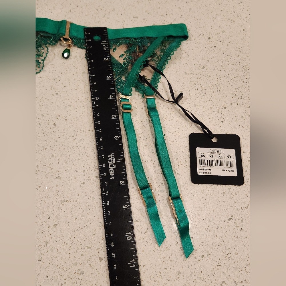 как выглядит Honey Birdette Laura Emerald Green Lace Garter belt size XS NWT фото
