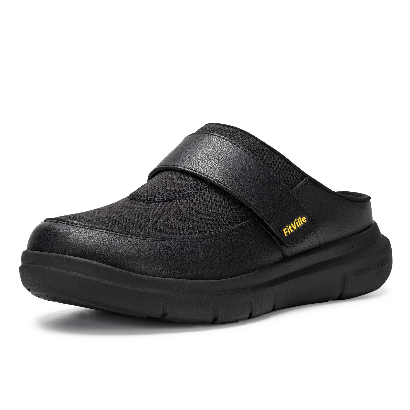 FitVille Mens Wide Slippers Slip-On Mules Clogs for Swollen Feet Indoors Walking
