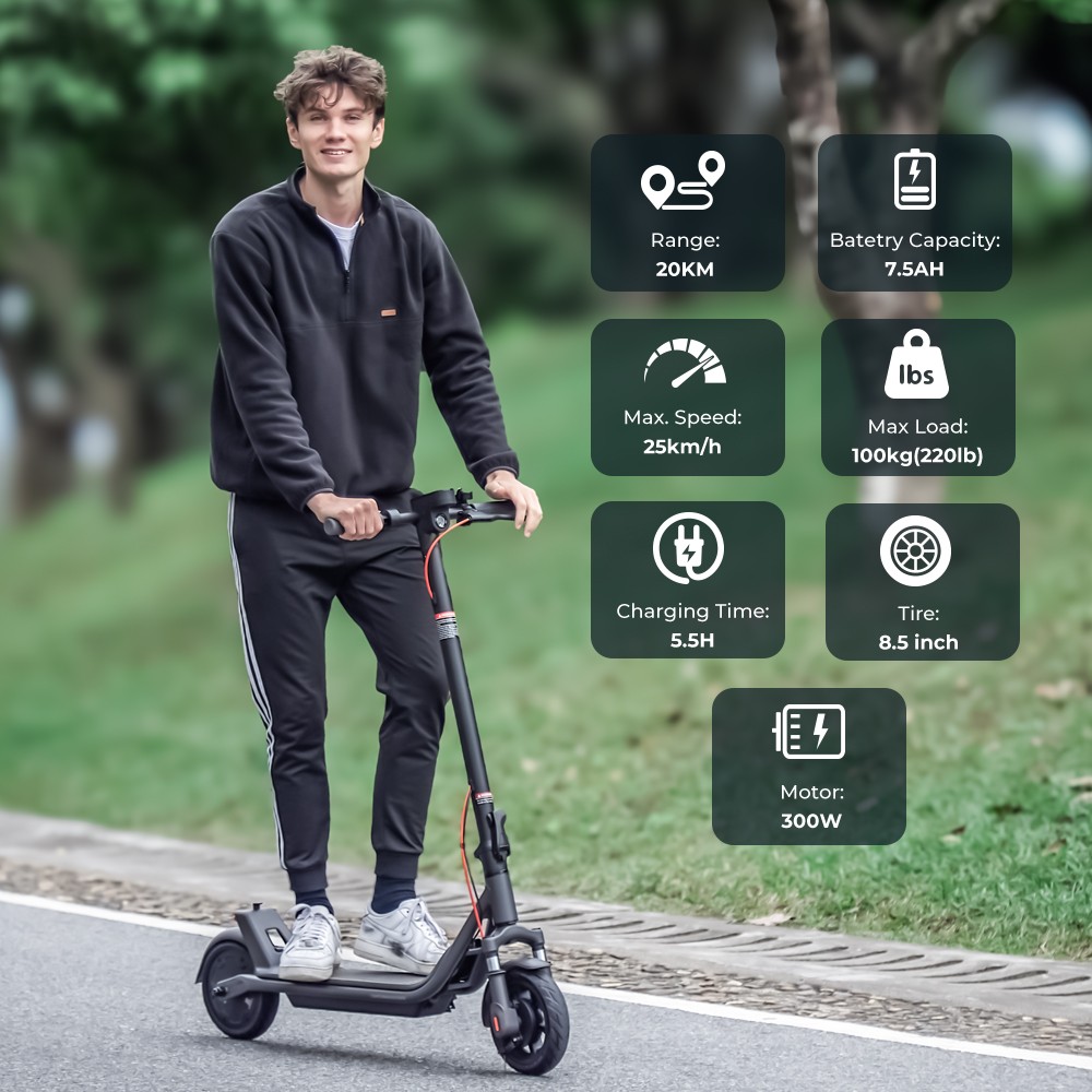 Electric Scooter, 350W 8.5 Solid Tires, 15.5Mph, 20 Miles Max Range e scooter