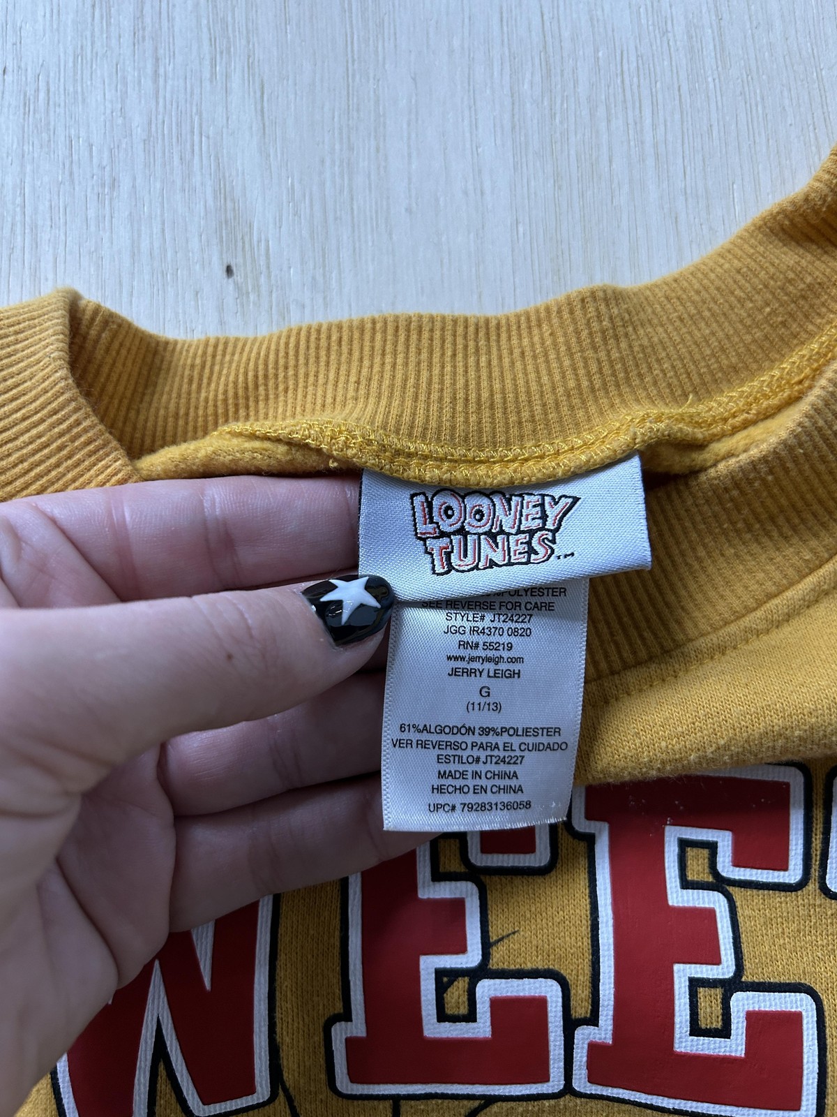 Looney Tunes Tweety Sweatshirt Juniors 11/13 Yellow Colorblock Fleece Pullover