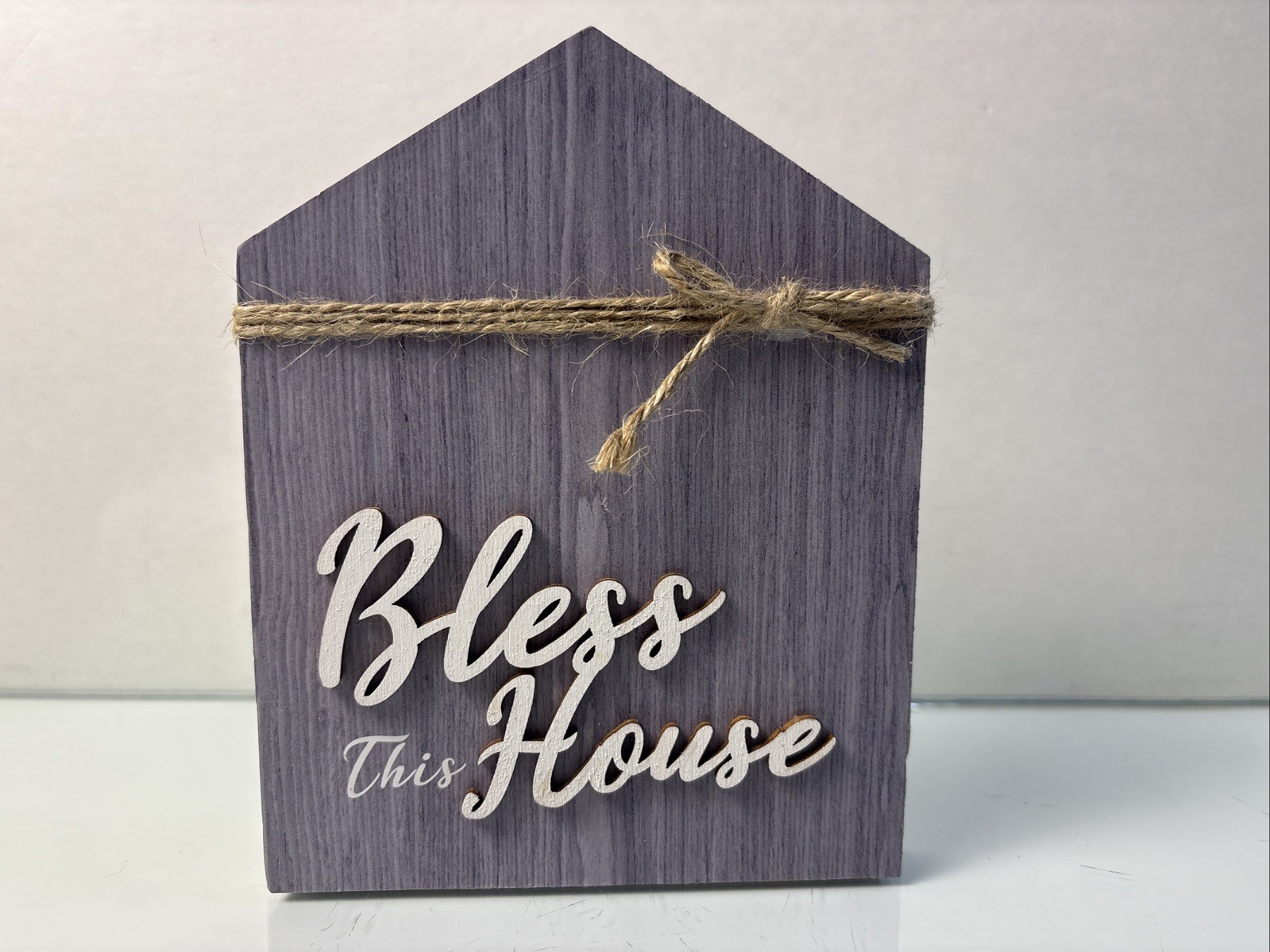 Bless This House Wood Sign Farmhouse Shelf Decor Rustic Tabletop Block