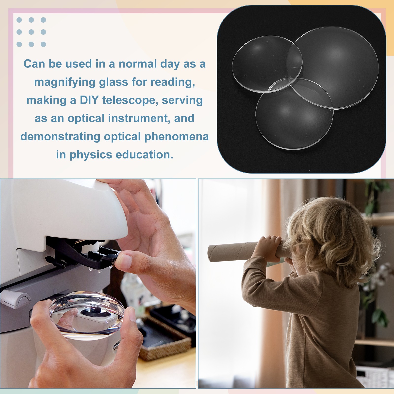 как выглядит 15 Pack Biconvex Lens, 50mm Dia. 180mm Focal Length Spherical Optical Lenses фото