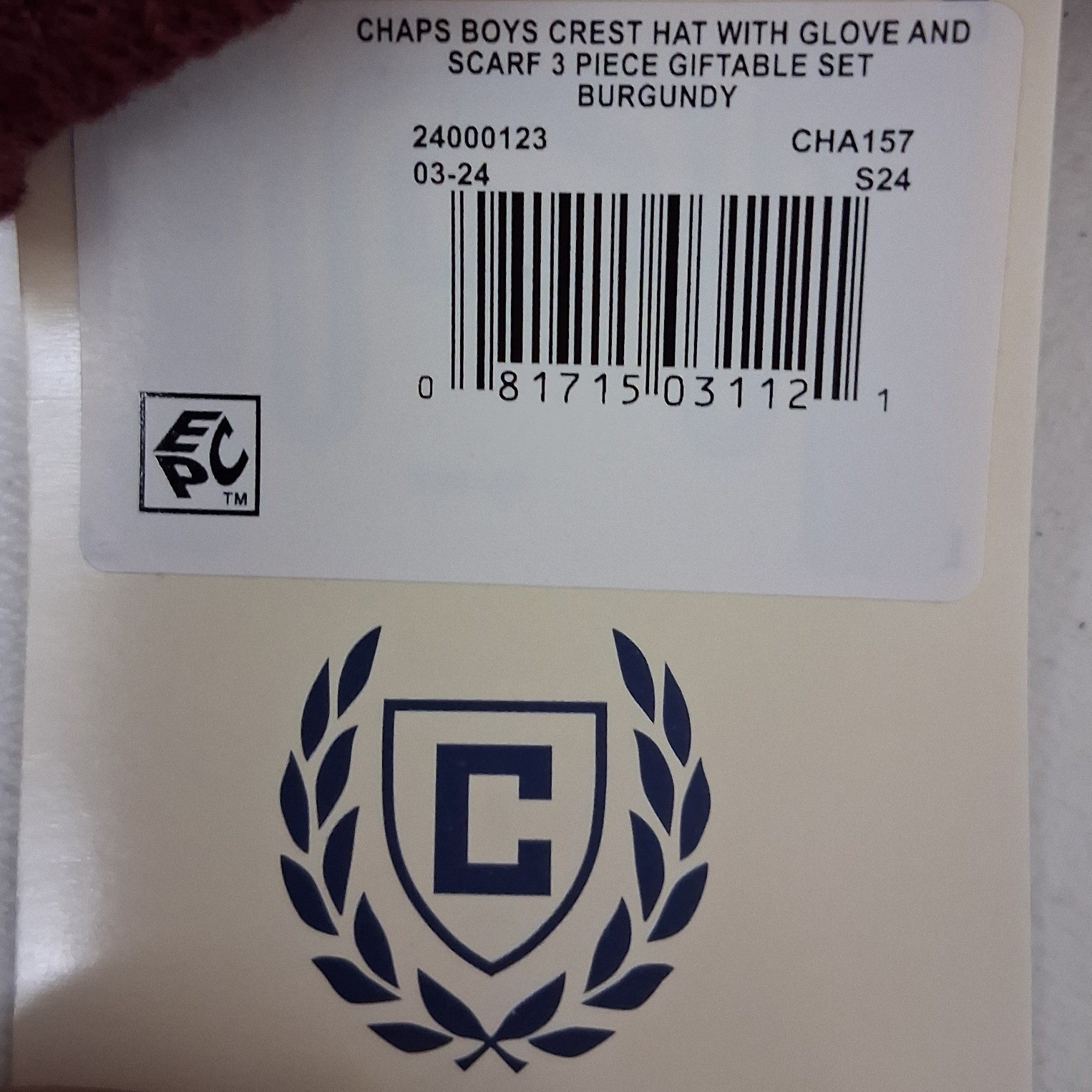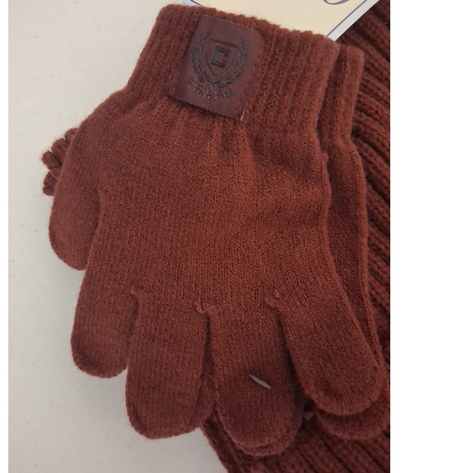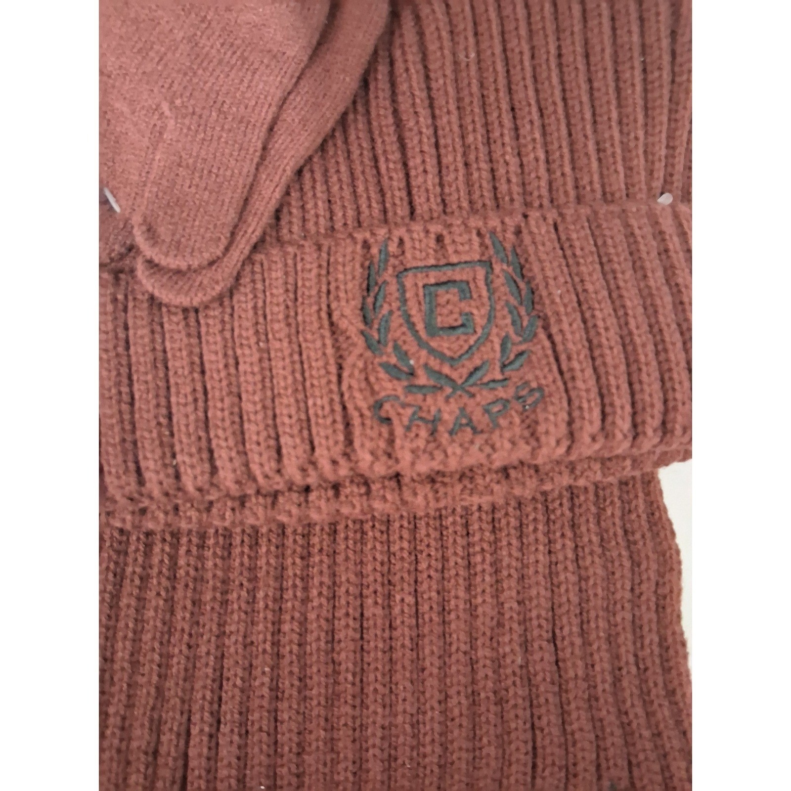 как выглядит Chaps Kids Burgundy Knit Scarf Hat Gloves Set Winter Warm Beanie Set фото