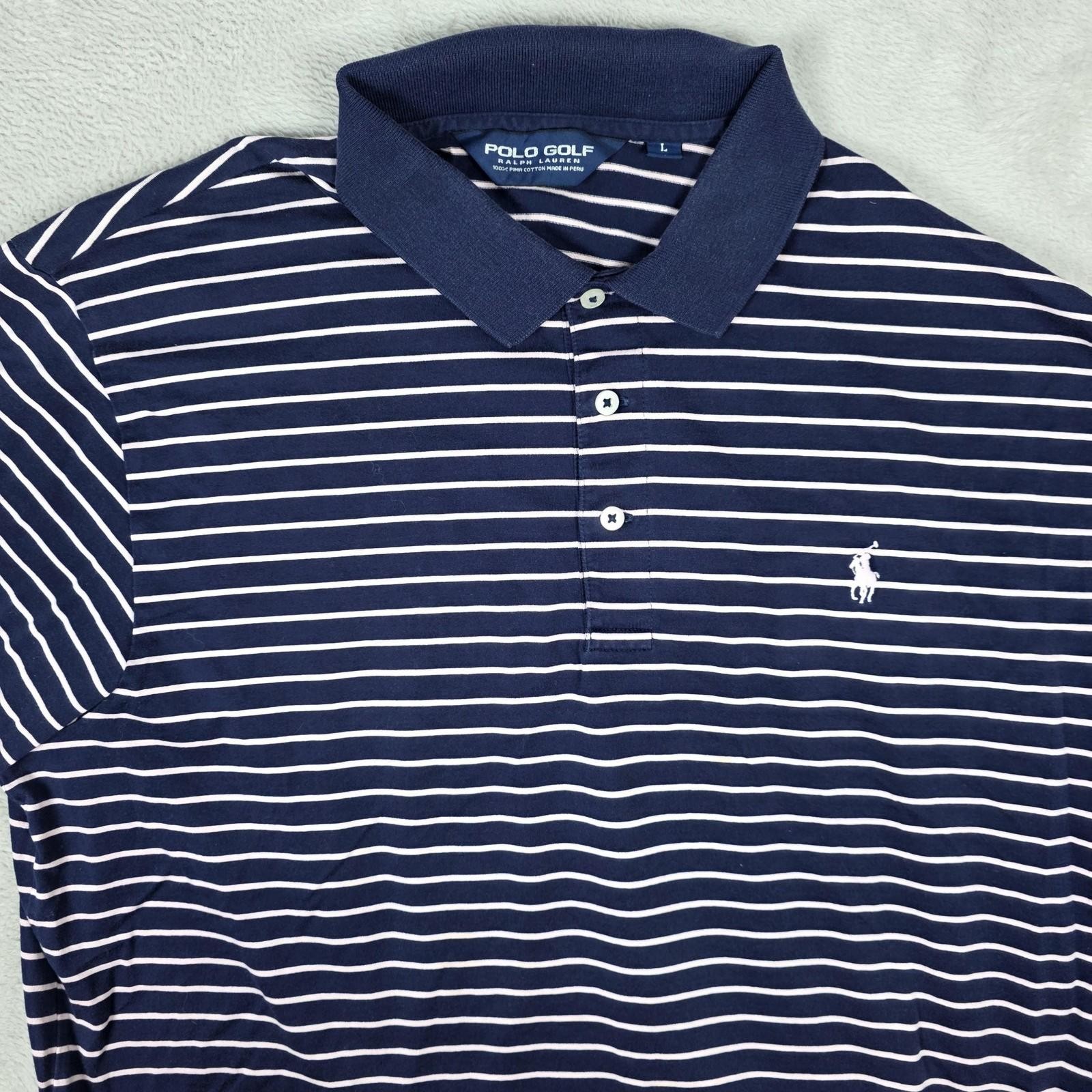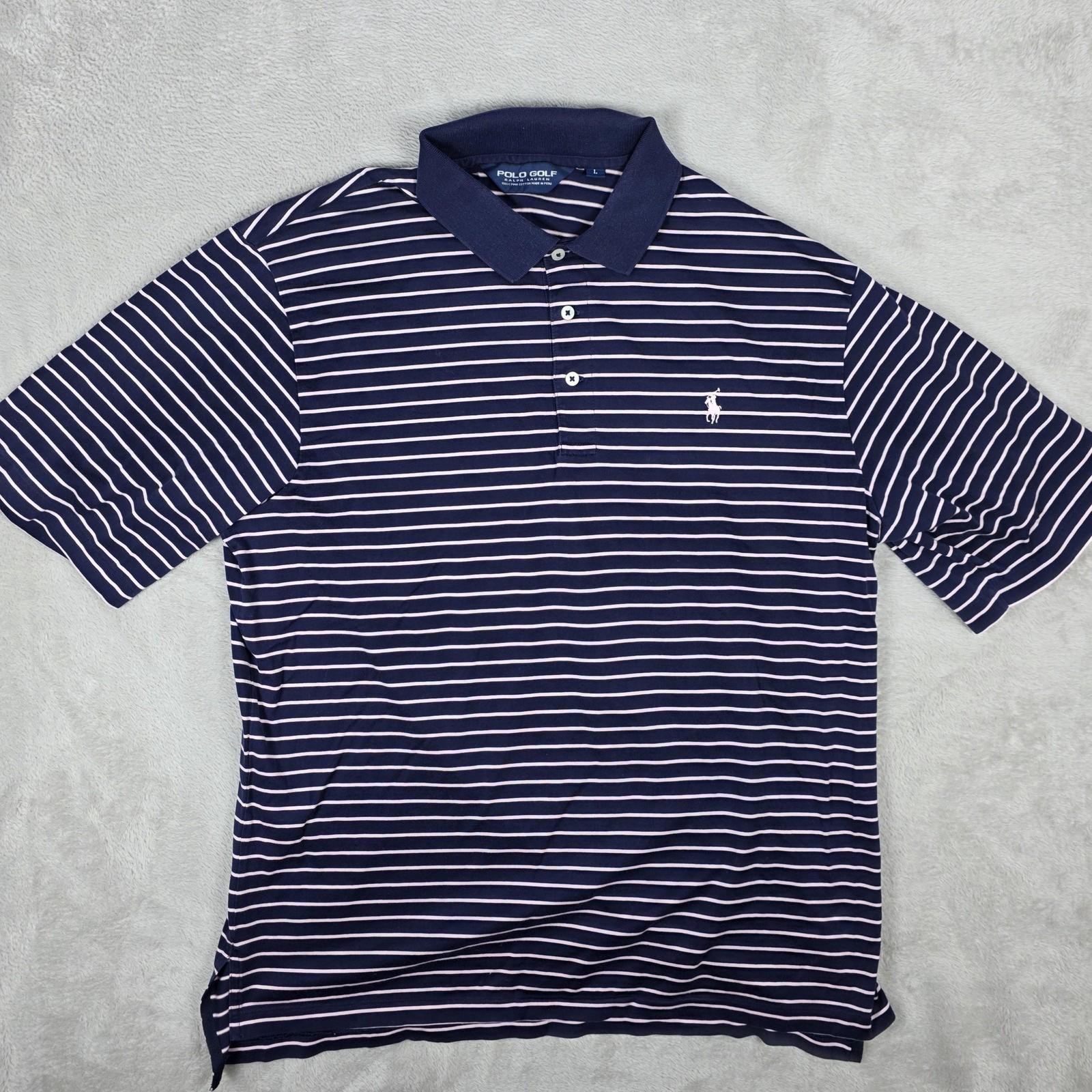 Polo Golf Ralph Lauren Polo Shirt Mens Large Navy Blue White Stripe Classic Golf
