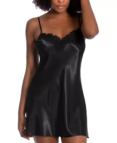 NWT Linea Donatella L Dreamer Lace-Trim Satin Chemise Nightgown BDE011 Black