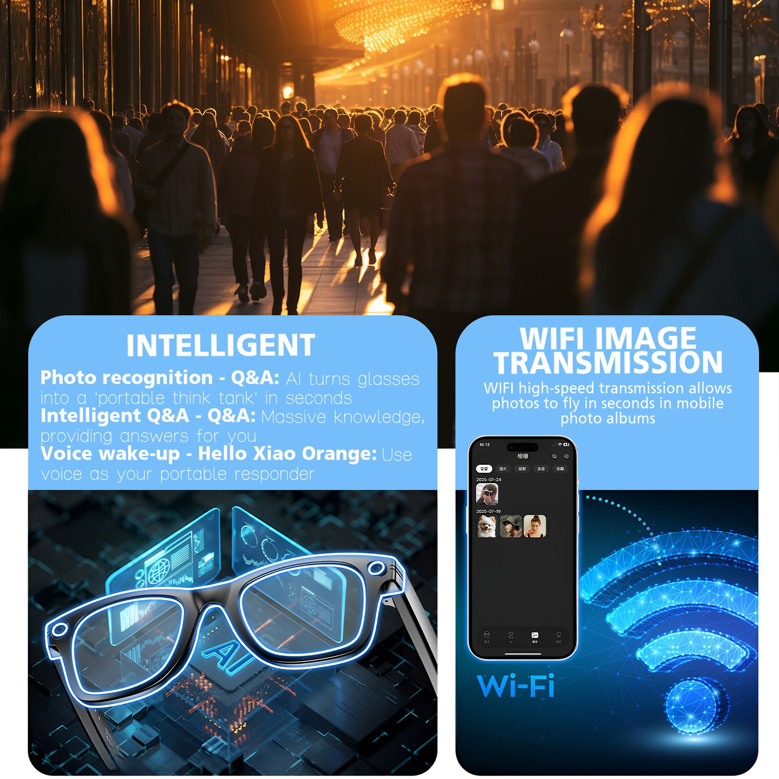 8 MP AI Smart Glasses Video Recording Photo Recognition Translation Waterproof