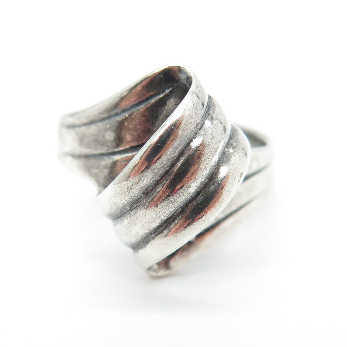 925 Sterling Silver Vintage Ribbed Ring Size 7