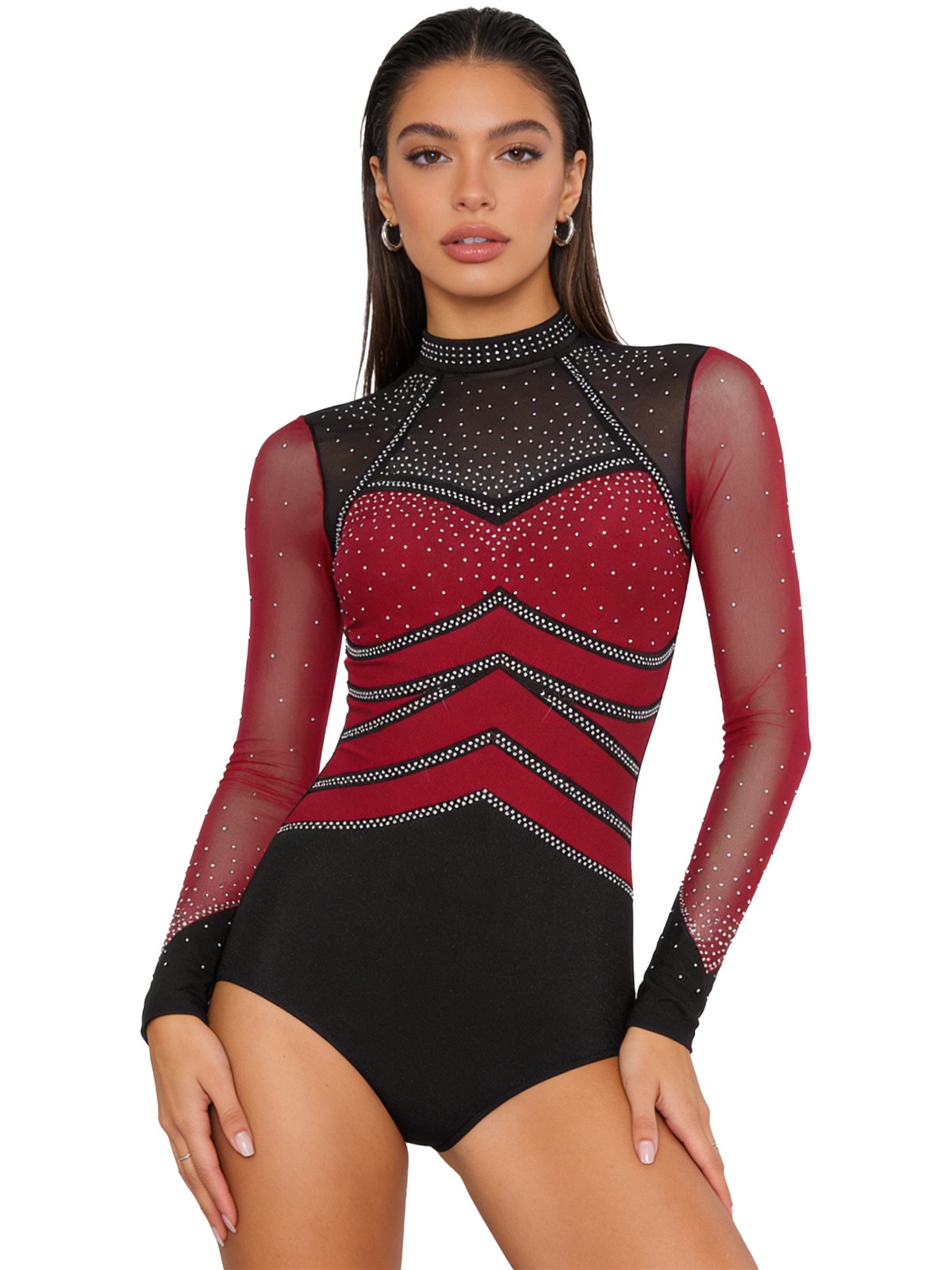 как выглядит US Womens Ballet Dance Leotard Mesh Long Sleeve Leotards for Skating Dancing фото
