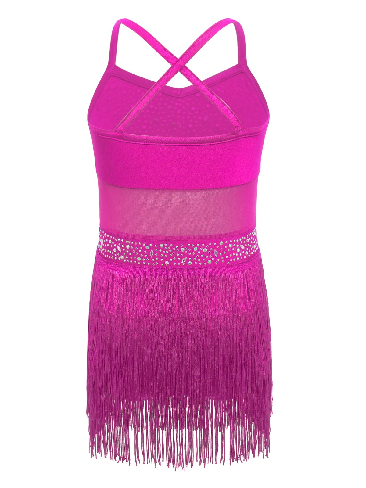 Kids Girls Sparkle Sleeveless Crisscross Straps Camisole Leotard Fringe Tassels