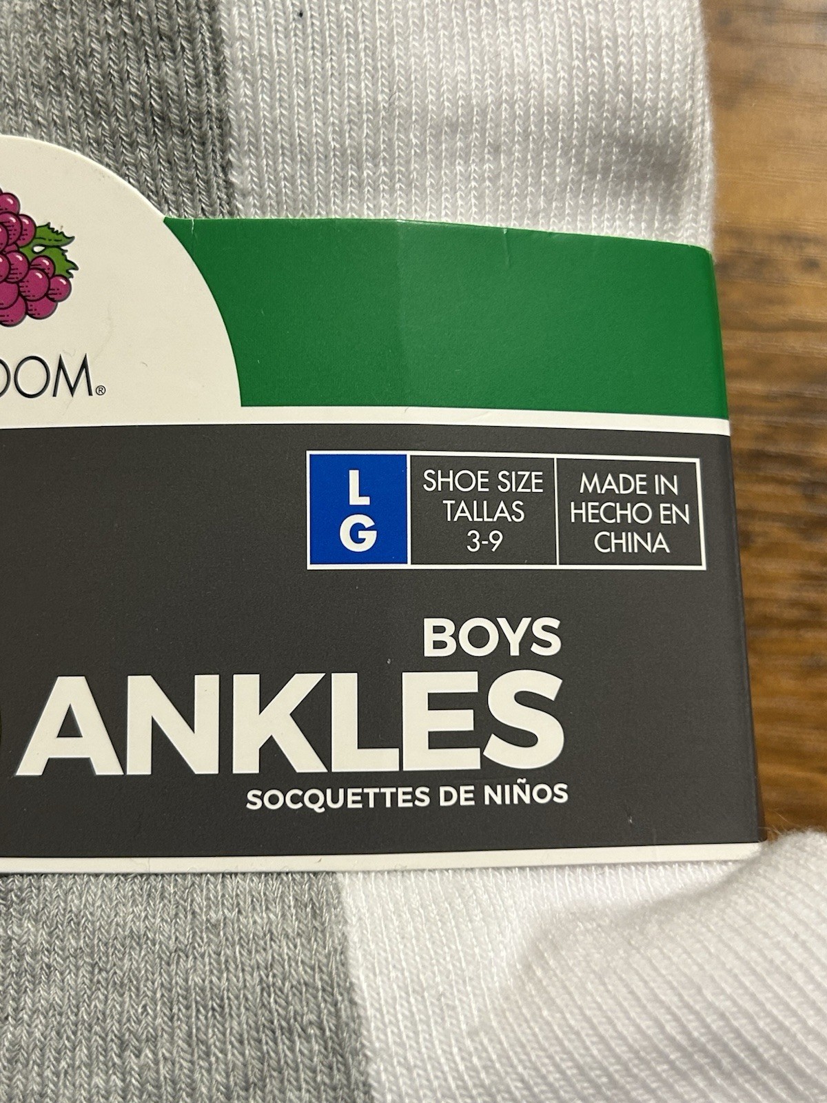 Fruit of the Loom Boys Cushioned Ankle Socks 10 Pair Large Shoe 3-9 - White