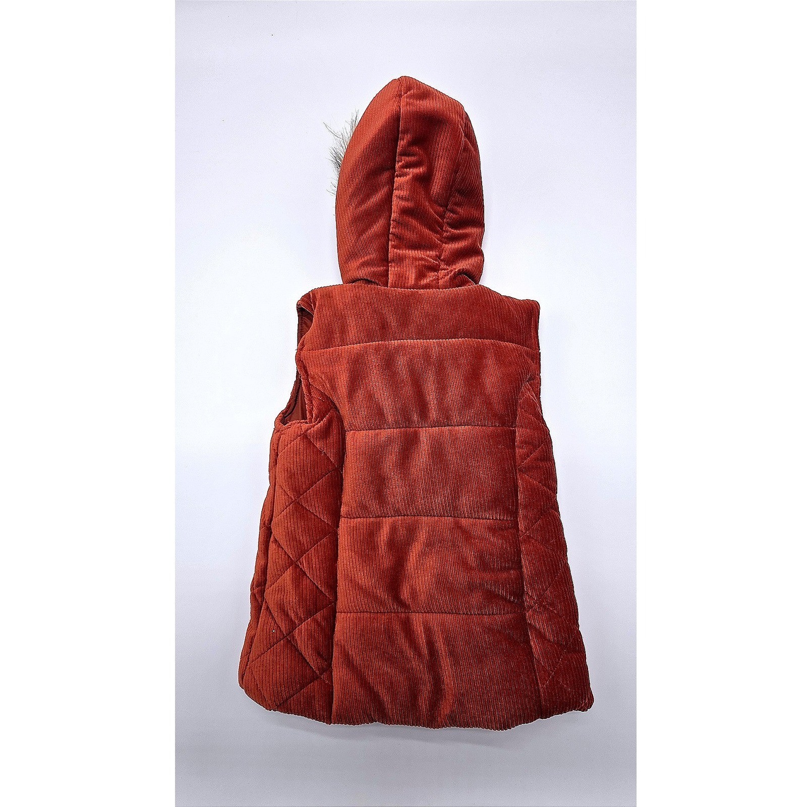 как выглядит Nicole Miller New York Kids 4T Orange Corduroy Faux Fur Hood Puffer Vest Quilted фото