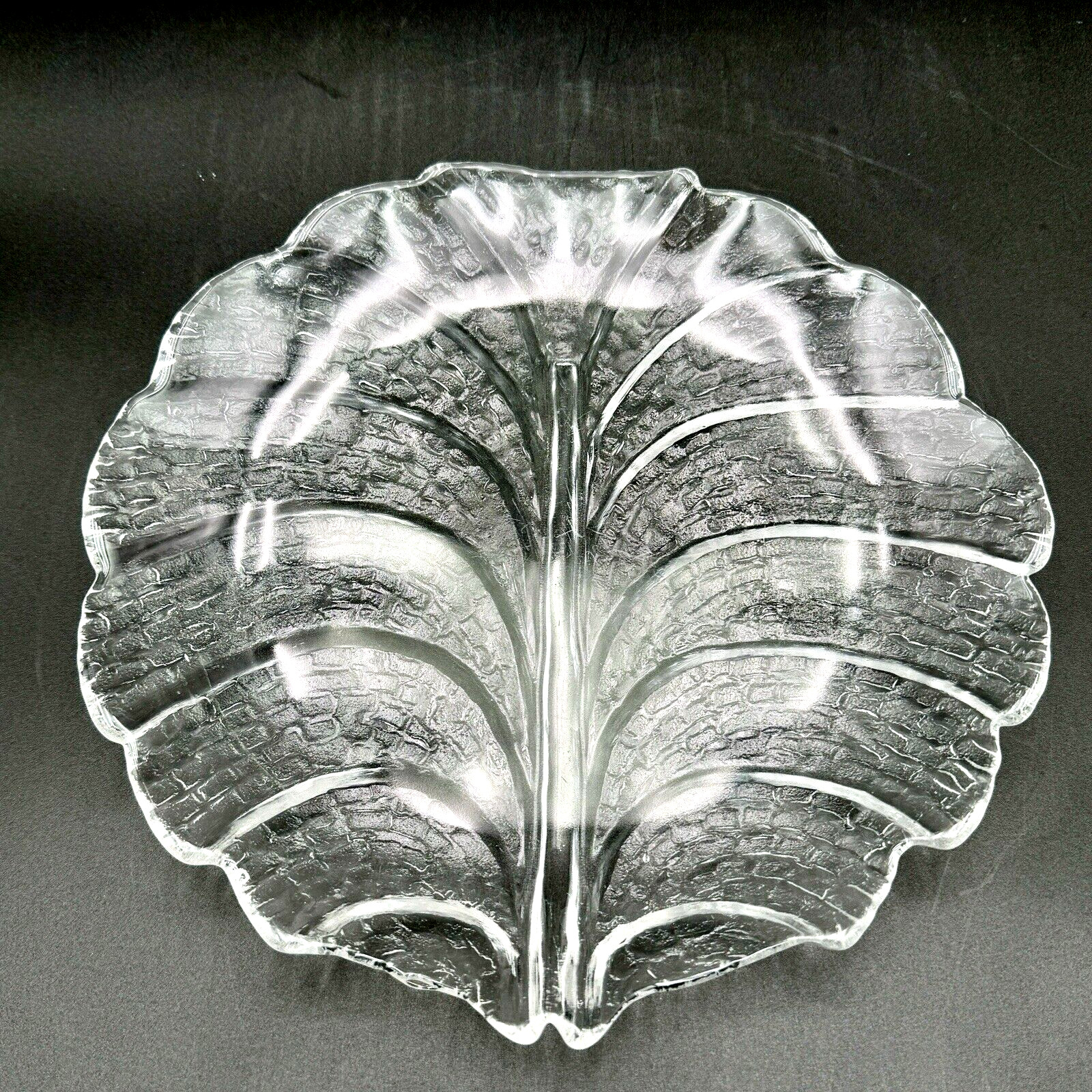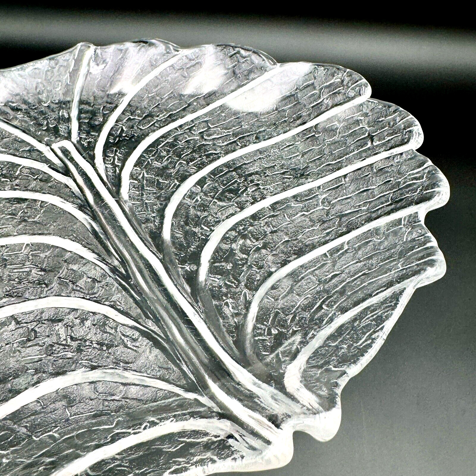 Orrefors Sweden EDEN Glass Leaf 10 1/8 Dinner Plate Serving Dish Vintage