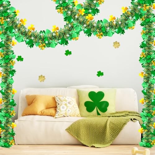St Patrick's Day Tinsel Garland, 50FT Green Gold Shamrock Hat Tinsel Style 2