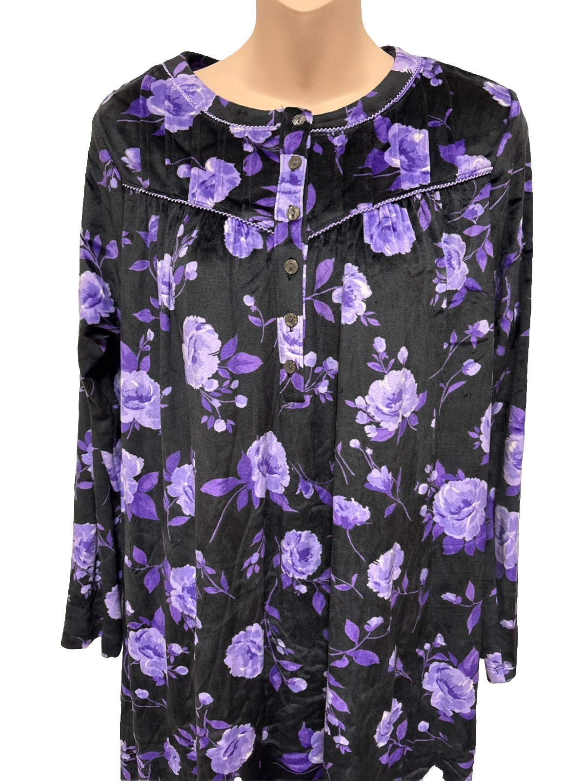 Aria Collection Long Sleeve Nightgown Womens Velour Purple Floral EUC SOFT XL