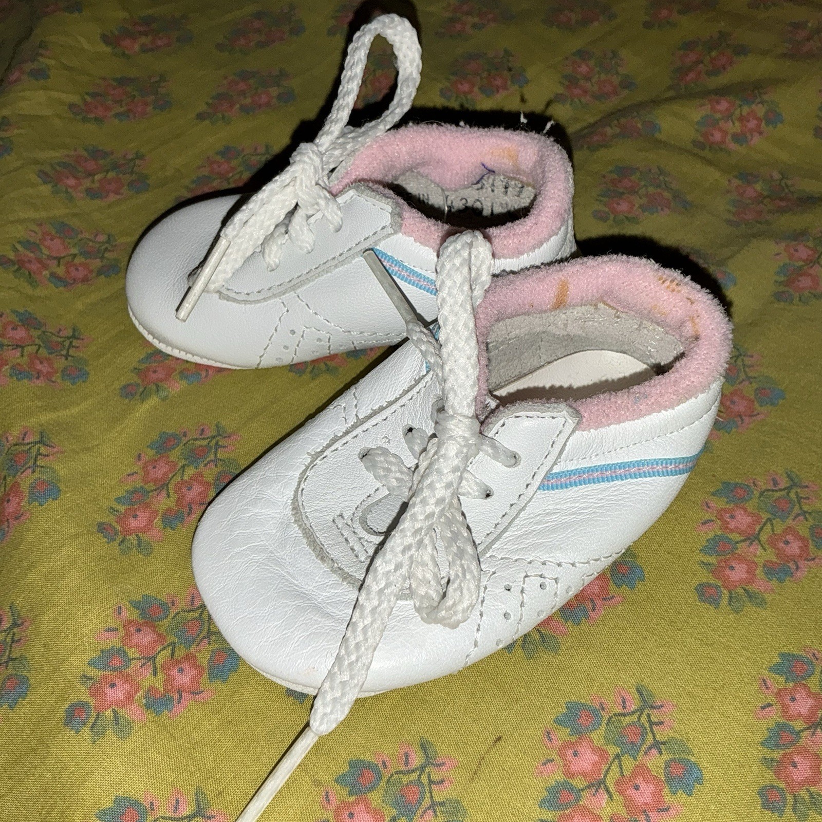 как выглядит Vintage foot Baby Deer Baby Shoes Size 1 White Pink Blue Girl 90s 80s фото