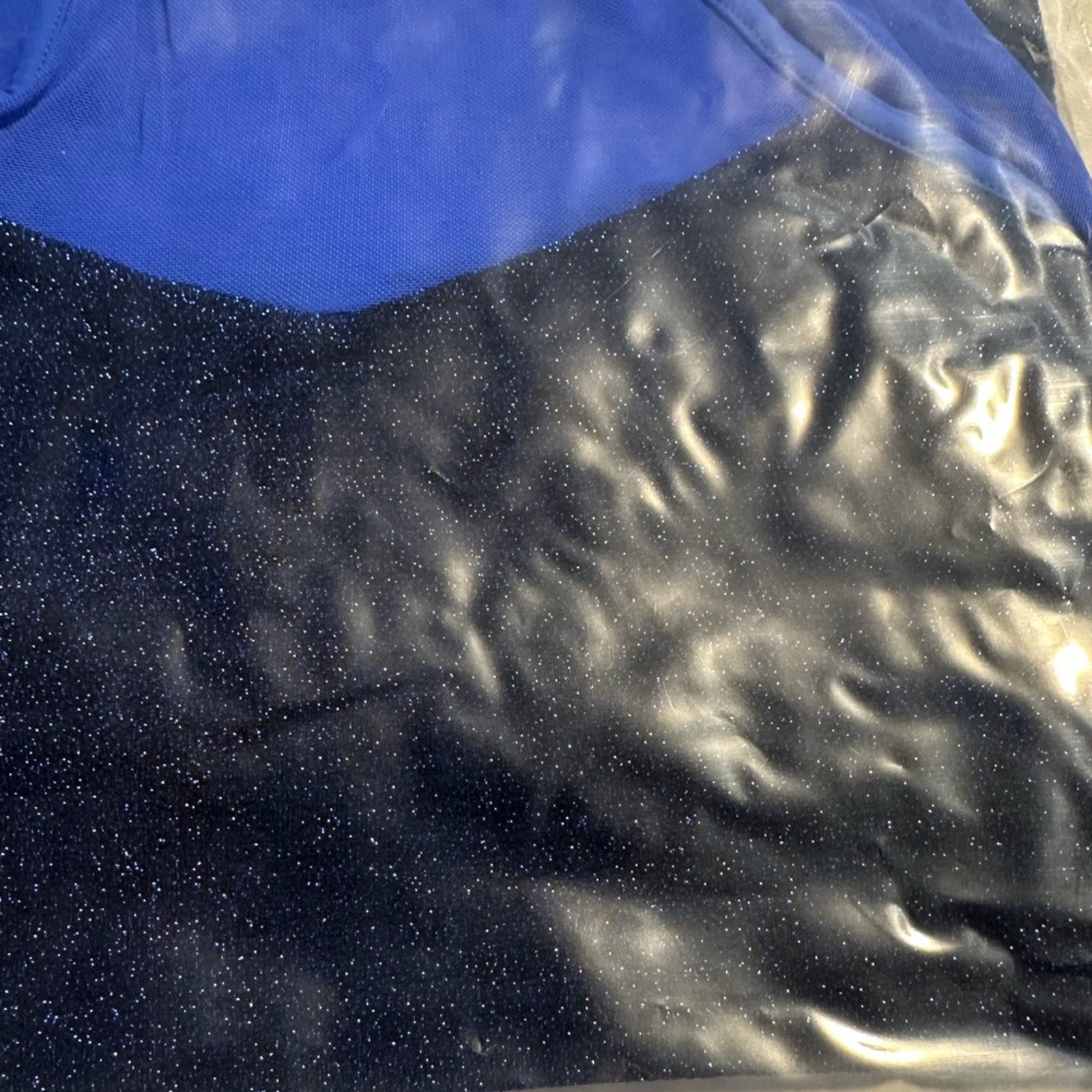 как выглядит Double Platinum Royal Blue Mesh Long Sleeve Sparkle Leotard Dance Gymnastics NWT фото