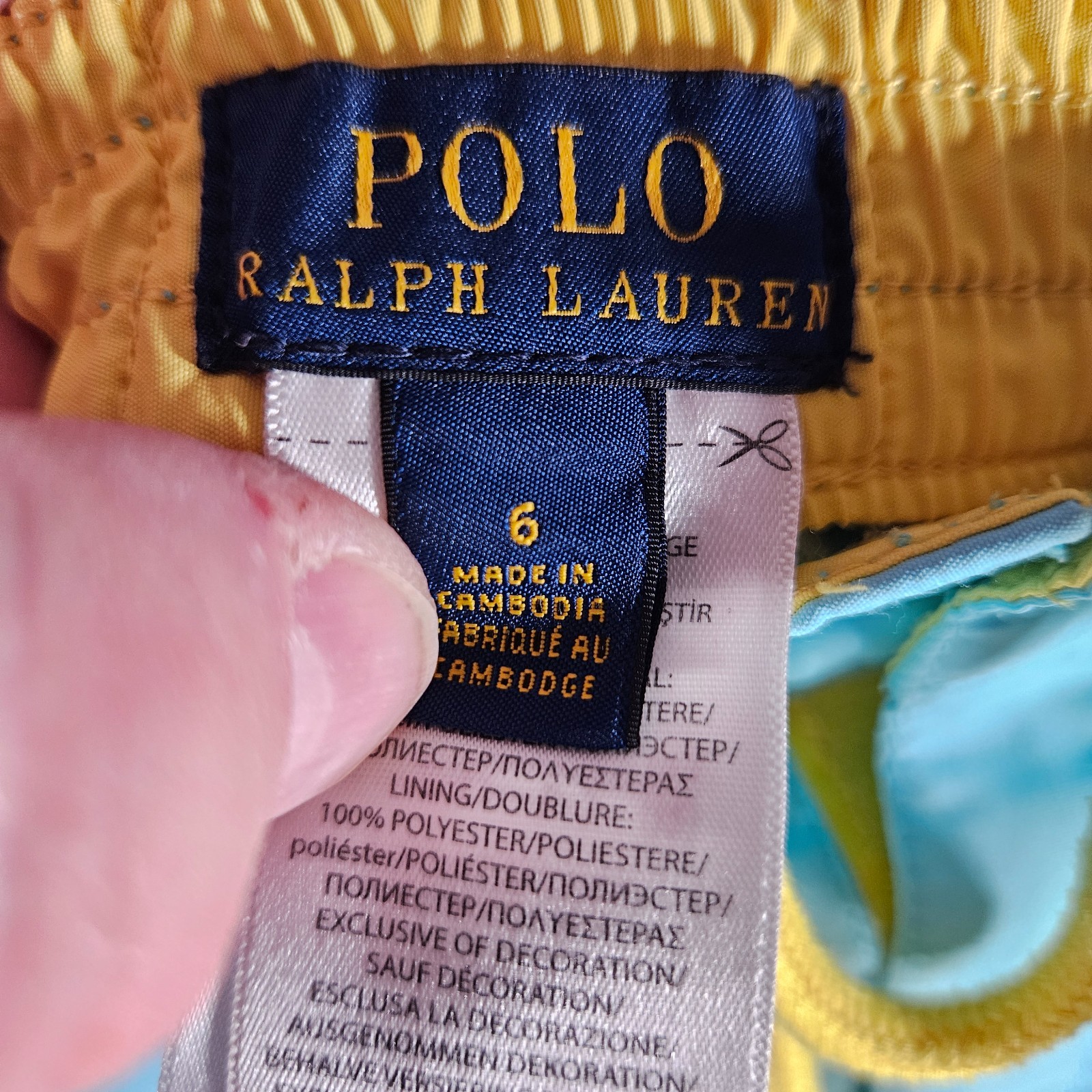 Polo Ralph Lauren Boys Size 6 Blue Yellow Big Pony Swim Trunks Summer Vacation