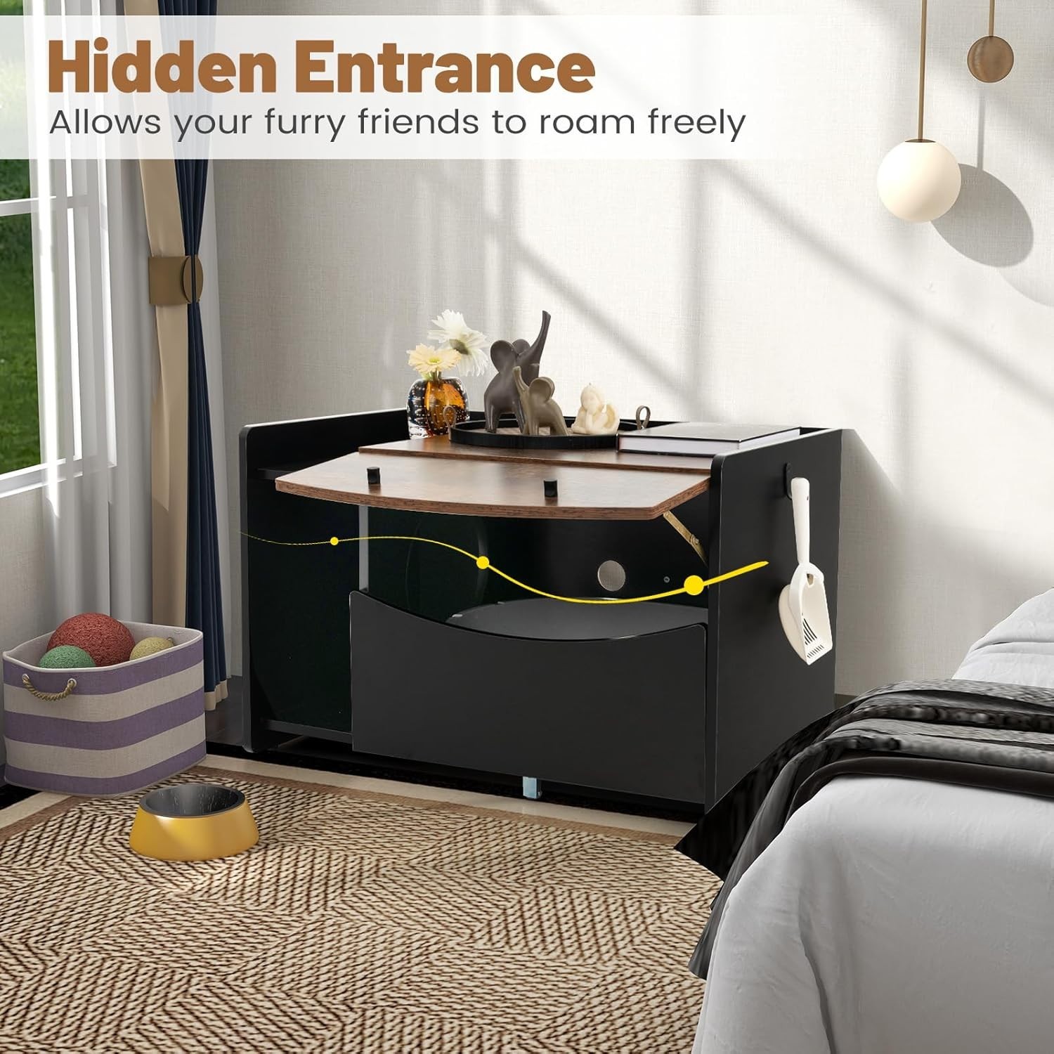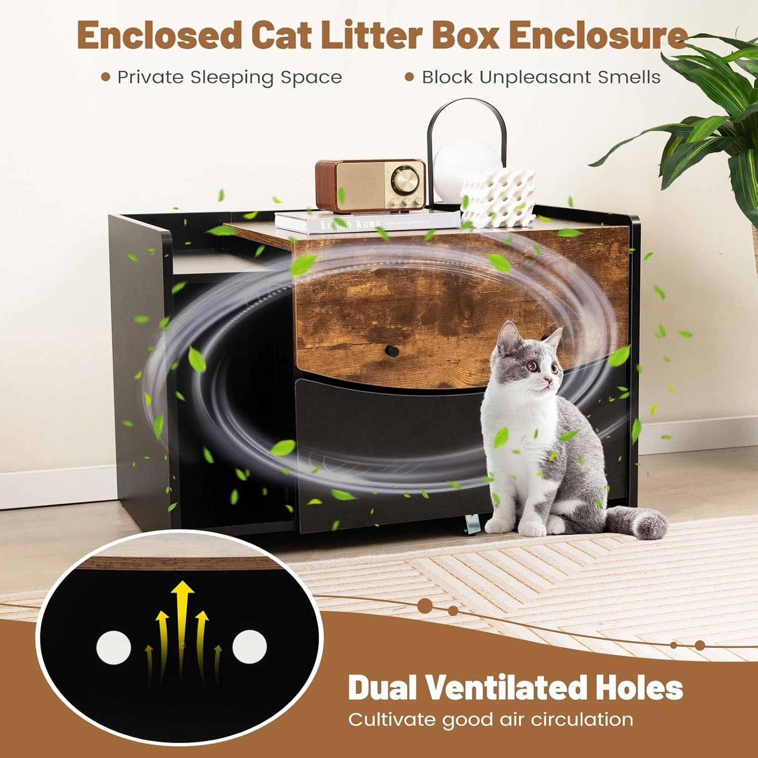 Luxurious Cat Litter Box Enclosure with Rolling Drawer Flip-Up Door - Rusti...