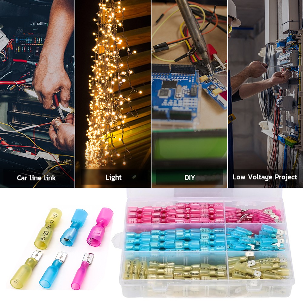 220x Electrical Heat Shrink Spade Male Female Wire Butt Terminals Connectors Kit