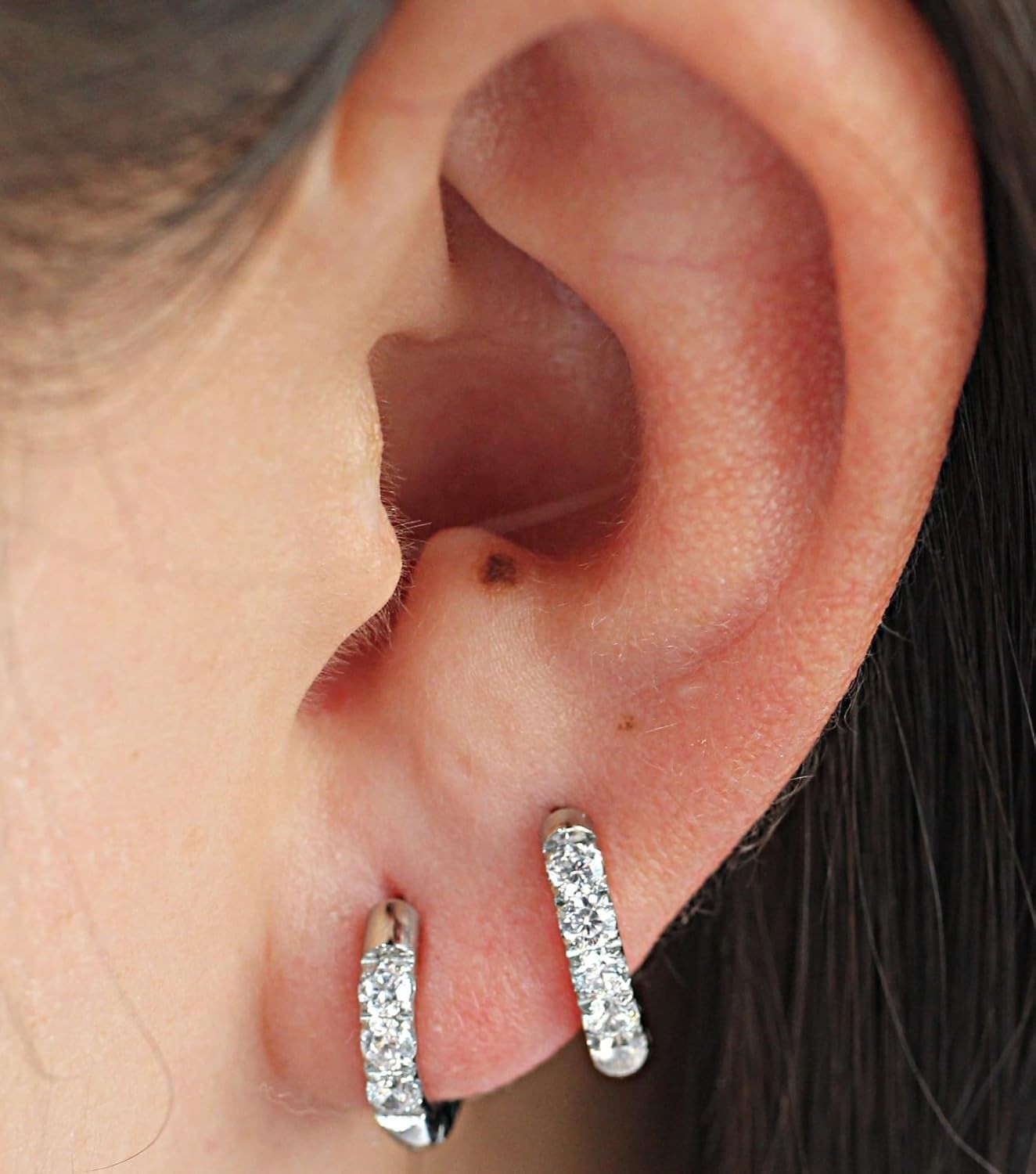 как выглядит 316L Surgical Steel Huggie Hoop Earrings with Cubic Zirconia, 8mm Inner Diameter фото
