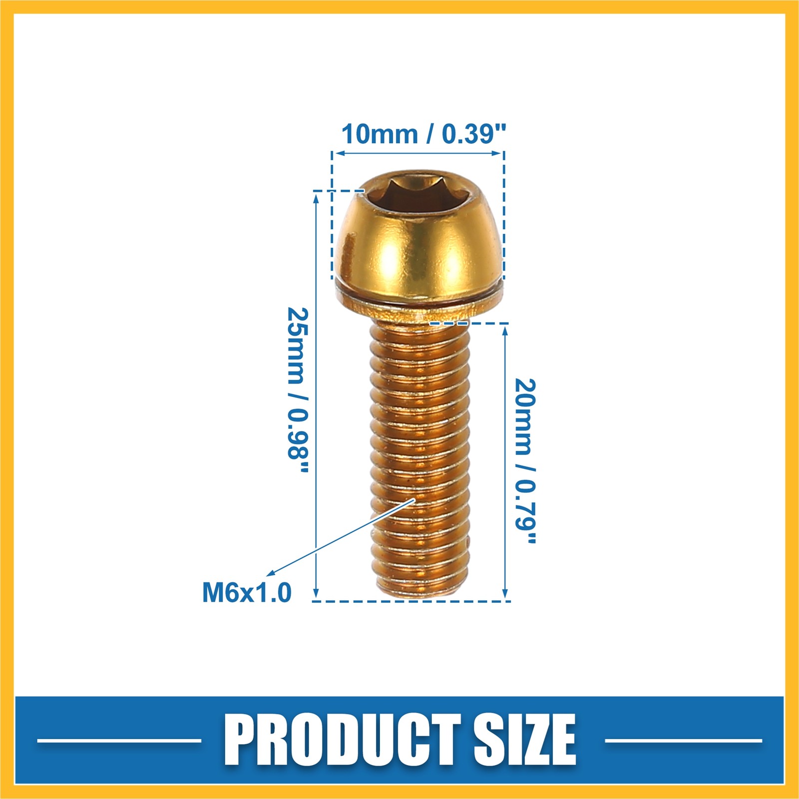 4 pcs Tapered Bolts Screws for MTB Bike Bicycle Stem M6x20mm Steel Gold Tone