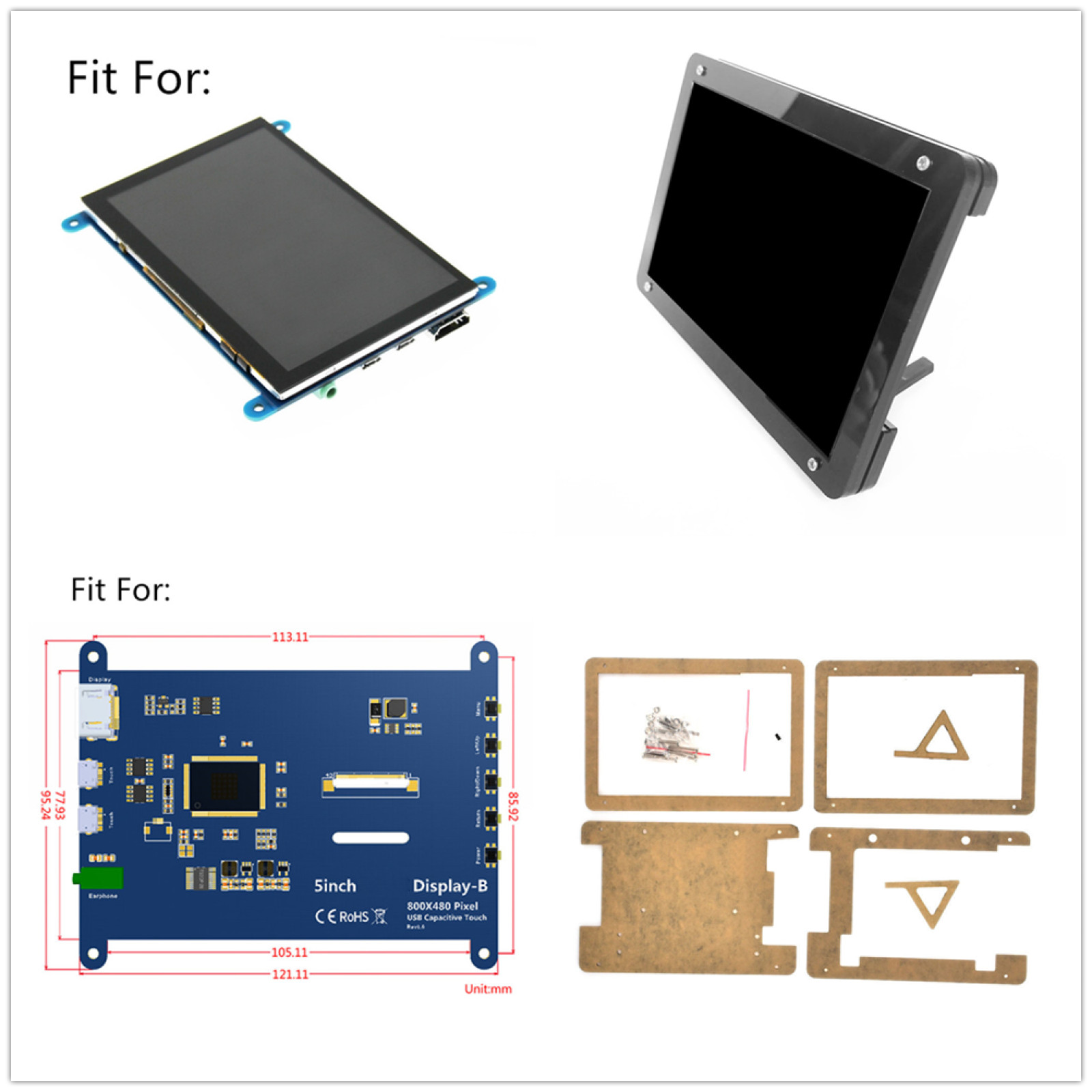 Raspberry Pi 5 Inch HD LCD Protective Case Monitor Enclosure