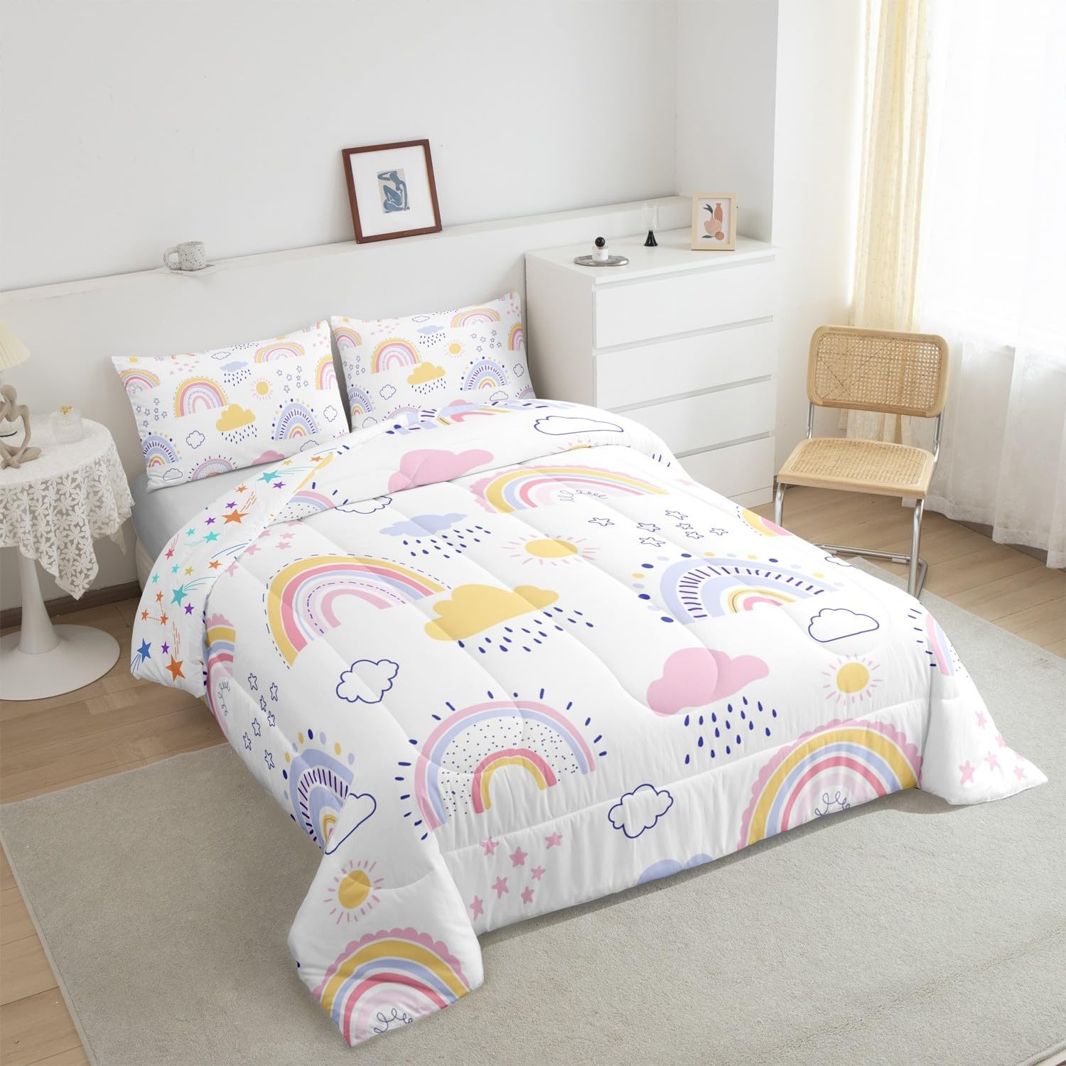 Cute Rainbow Comforter Set Kawaii Cloud Rainbow Bedding Set Twin For Girls Te...