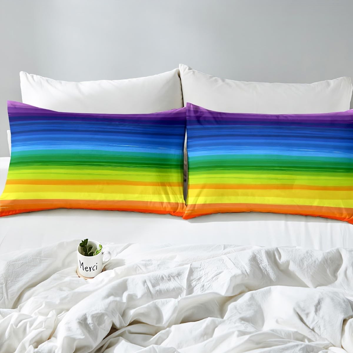 как выглядит Gradient Rainbow Stripes Bed Sheets Set Colorful Rainbow Set for Boys Girls M... фото