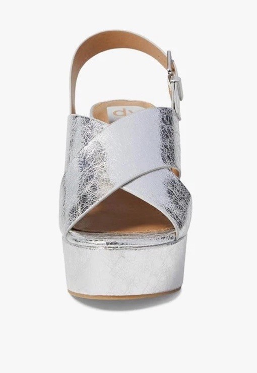 как выглядит DV by Dolce Vita Wentz Platform Crackled Silver Metallic Sandals Women s 7.5 фото