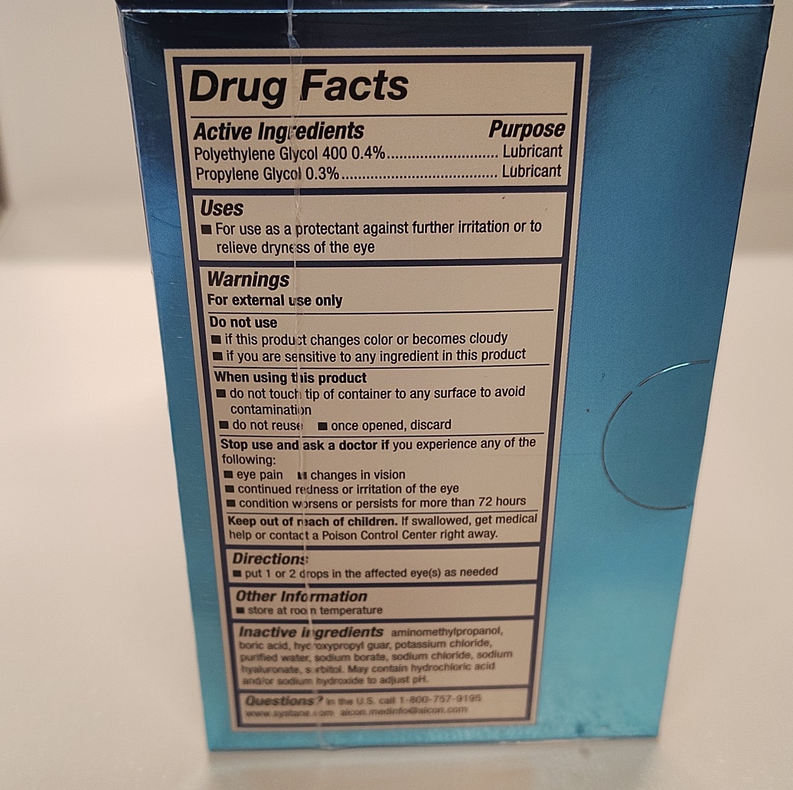 Active Ingredients: Polyethylene Glycol 400 0.4%, Propylene Glycol 0.3%