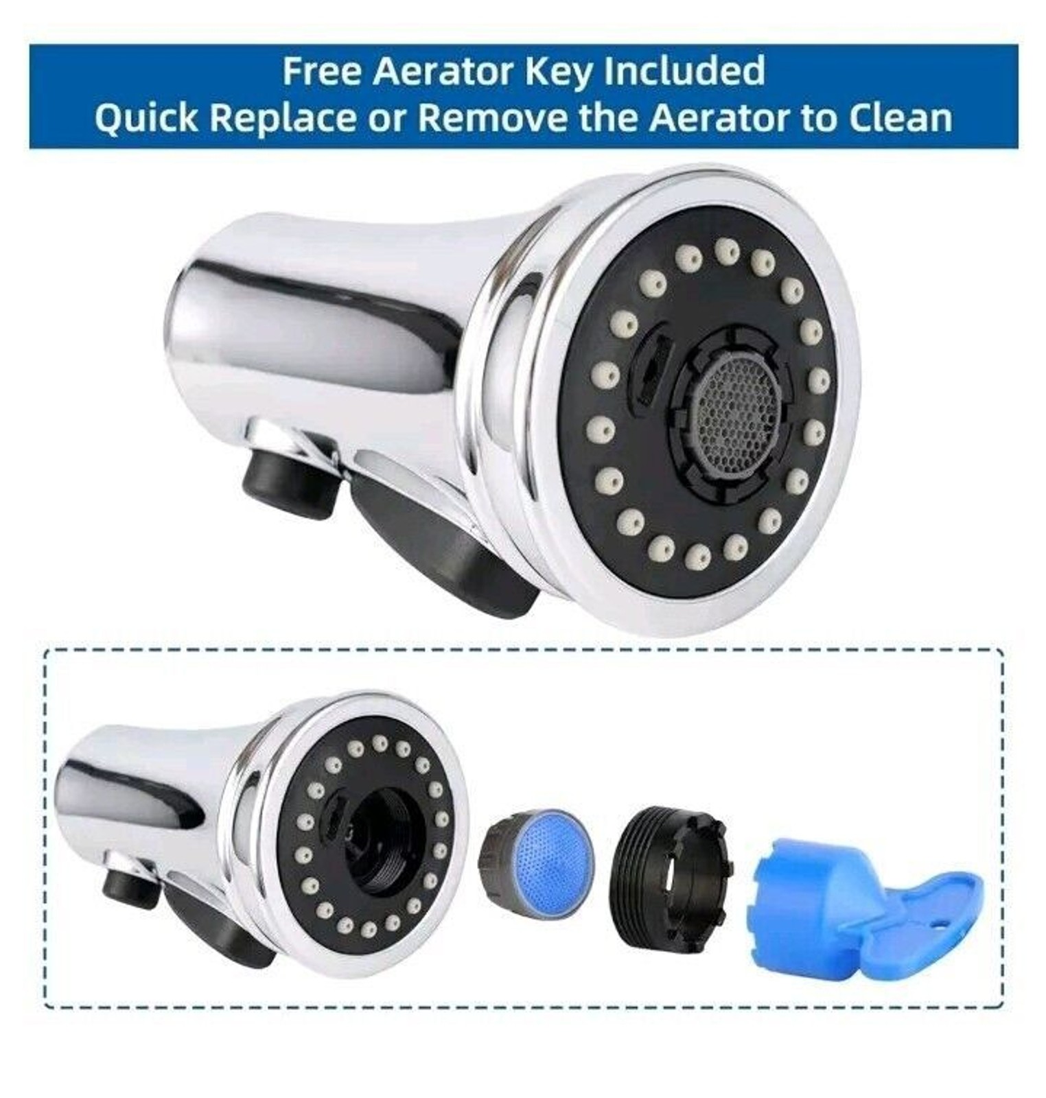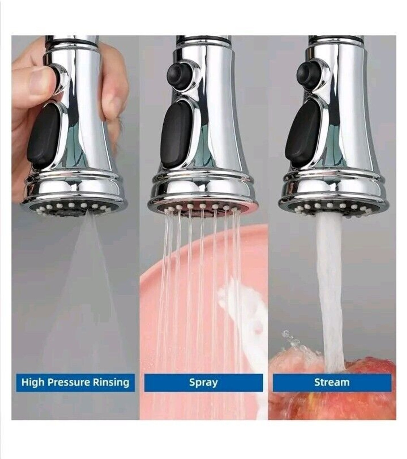 как выглядит Kitchen Faucet Pulldown Sprayer Head Replacement Three Function 15 Adapters... фото