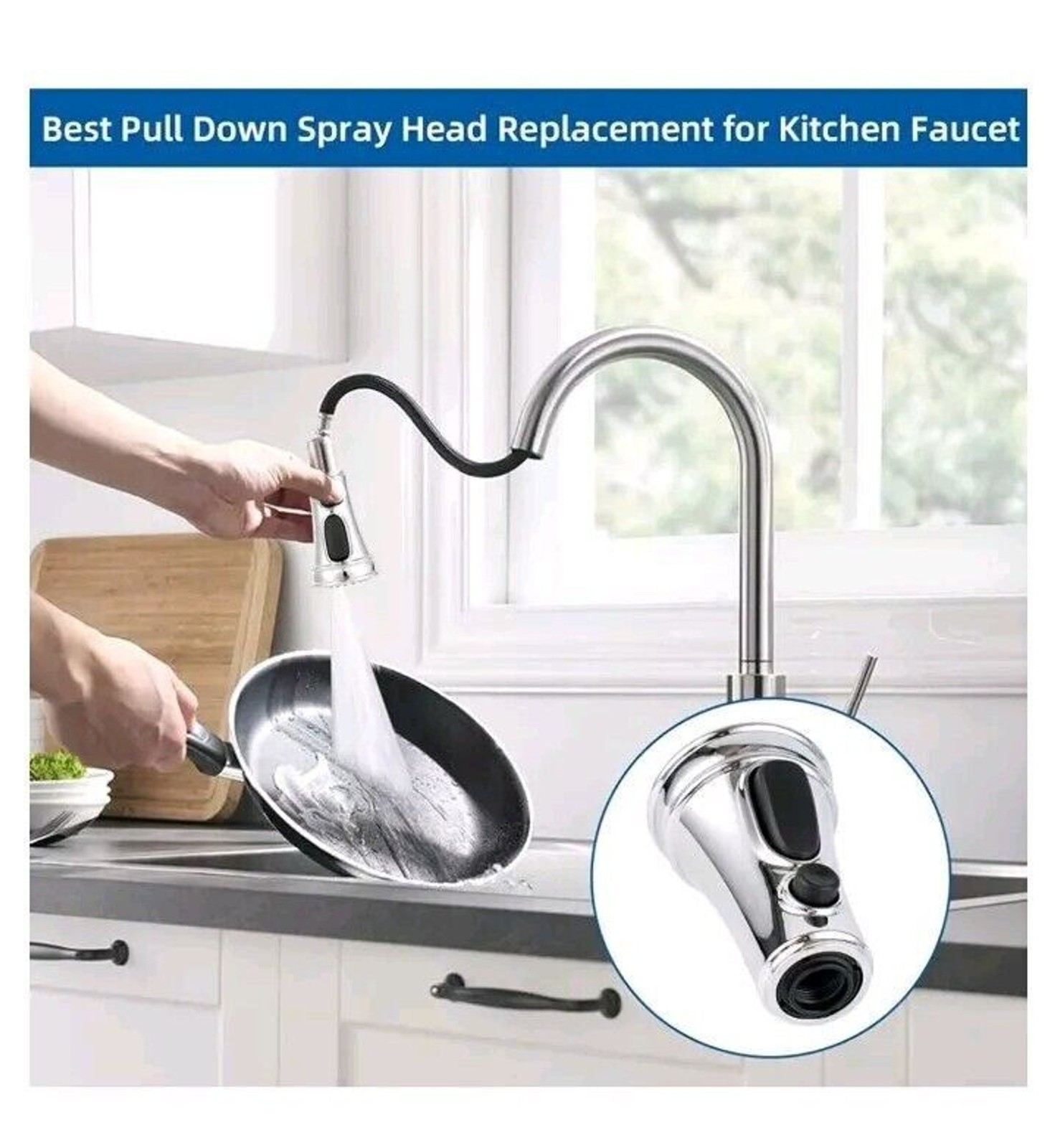 Kitchen Faucet Pulldown Sprayer Head Replacement Three Function 15 Adapters...