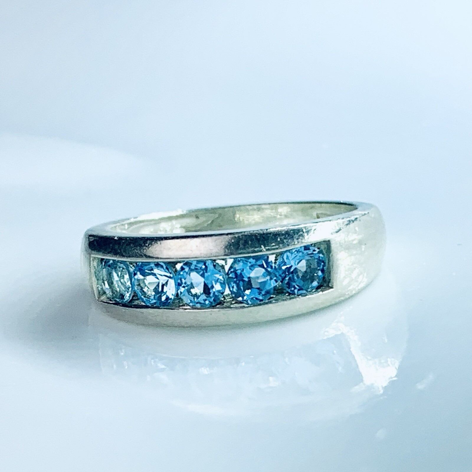 как выглядит Blue Topaz Sterling Silver Half Eternity Band Ring Size 8  Unisex, Preowned фото