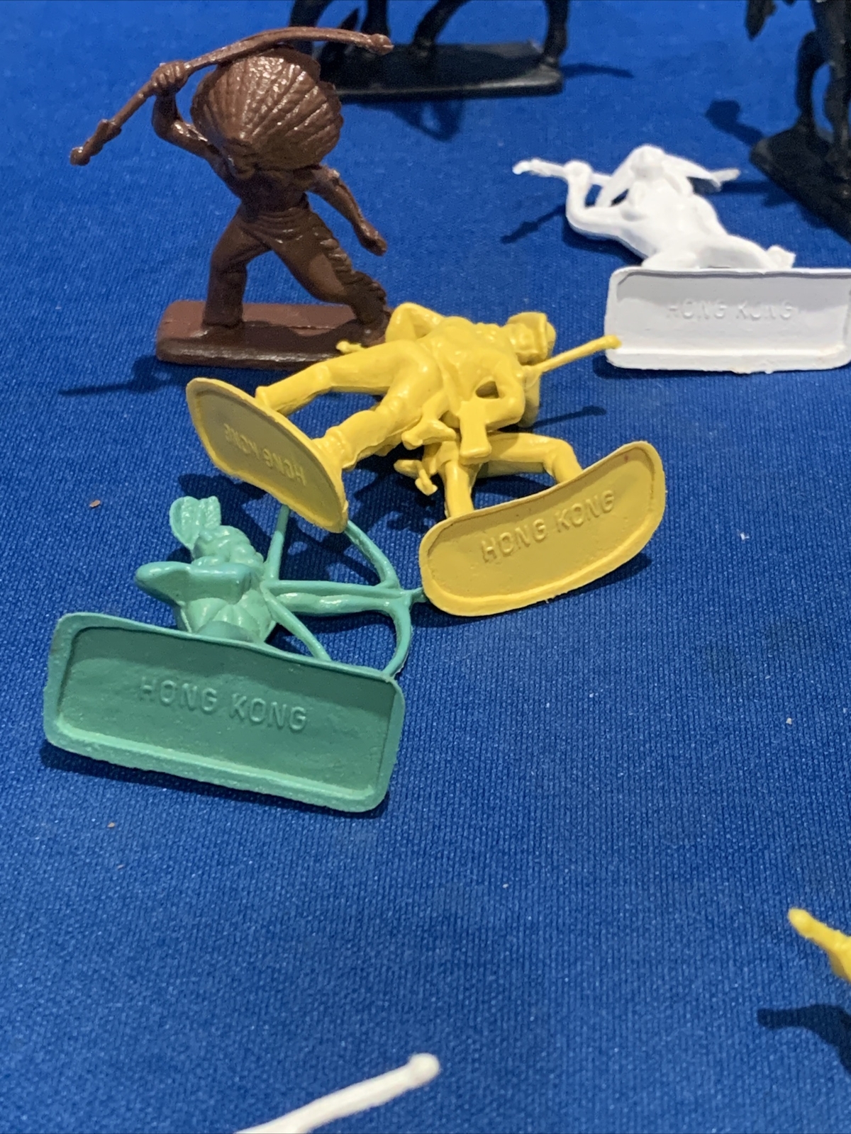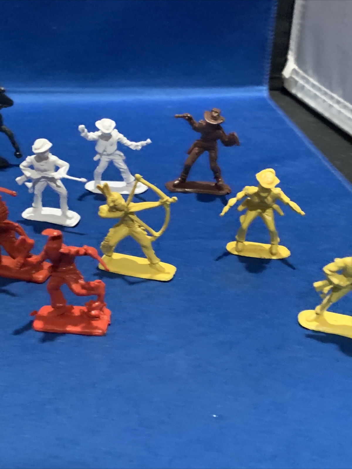 Lot of 22 Plastic Cowboys Indians Horses Figures Hong Kong Vintage Retro Toys