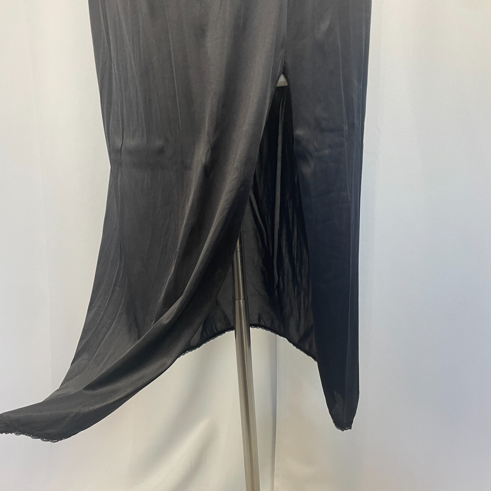 как выглядит Vassarette Half Slip Skirt Size XL Black Solid Satin Nylon Side Slit Long Midi фото