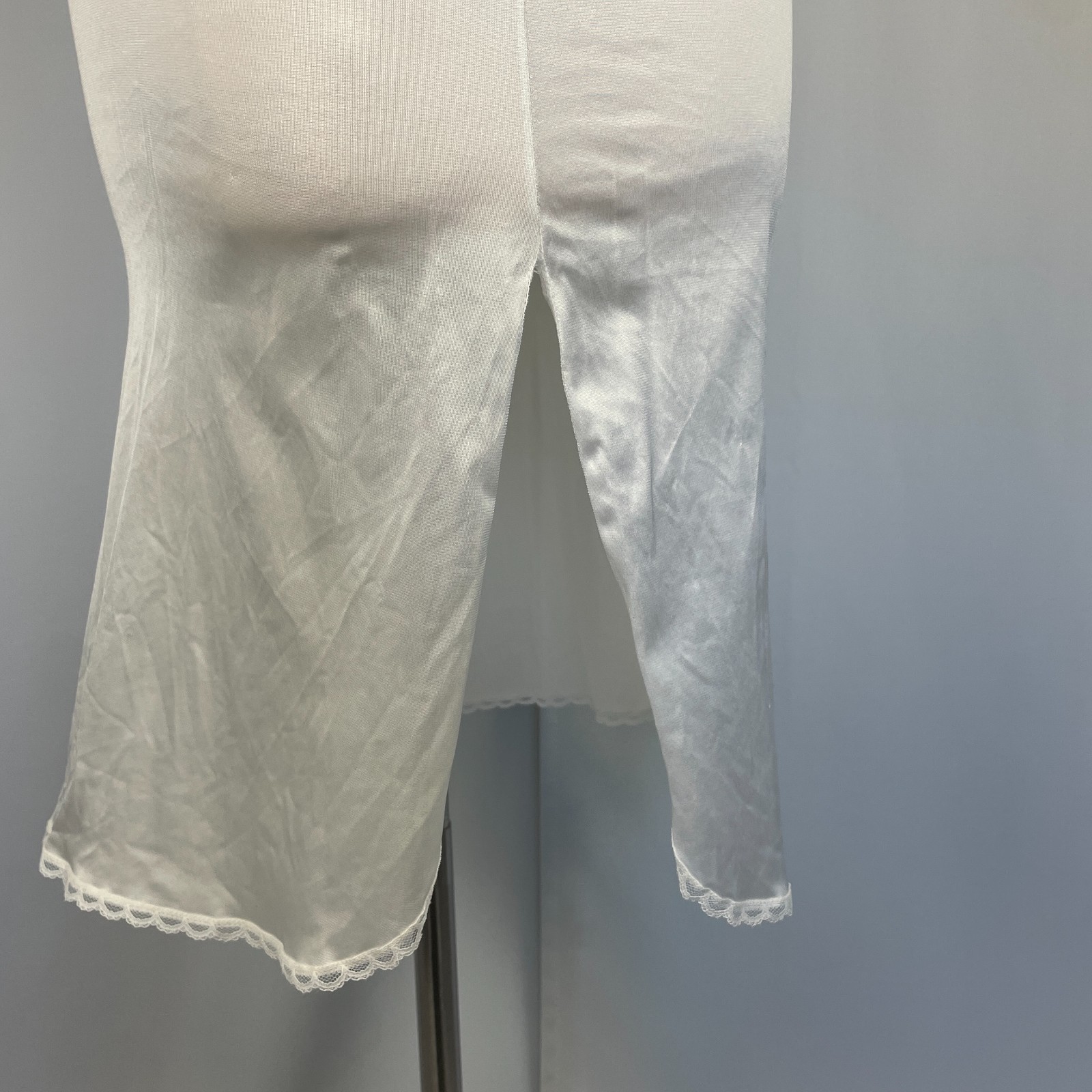 как выглядит Vintage Half Slip Skirt Size Large White Ivory Solid Satin Nylon Side Slit фото