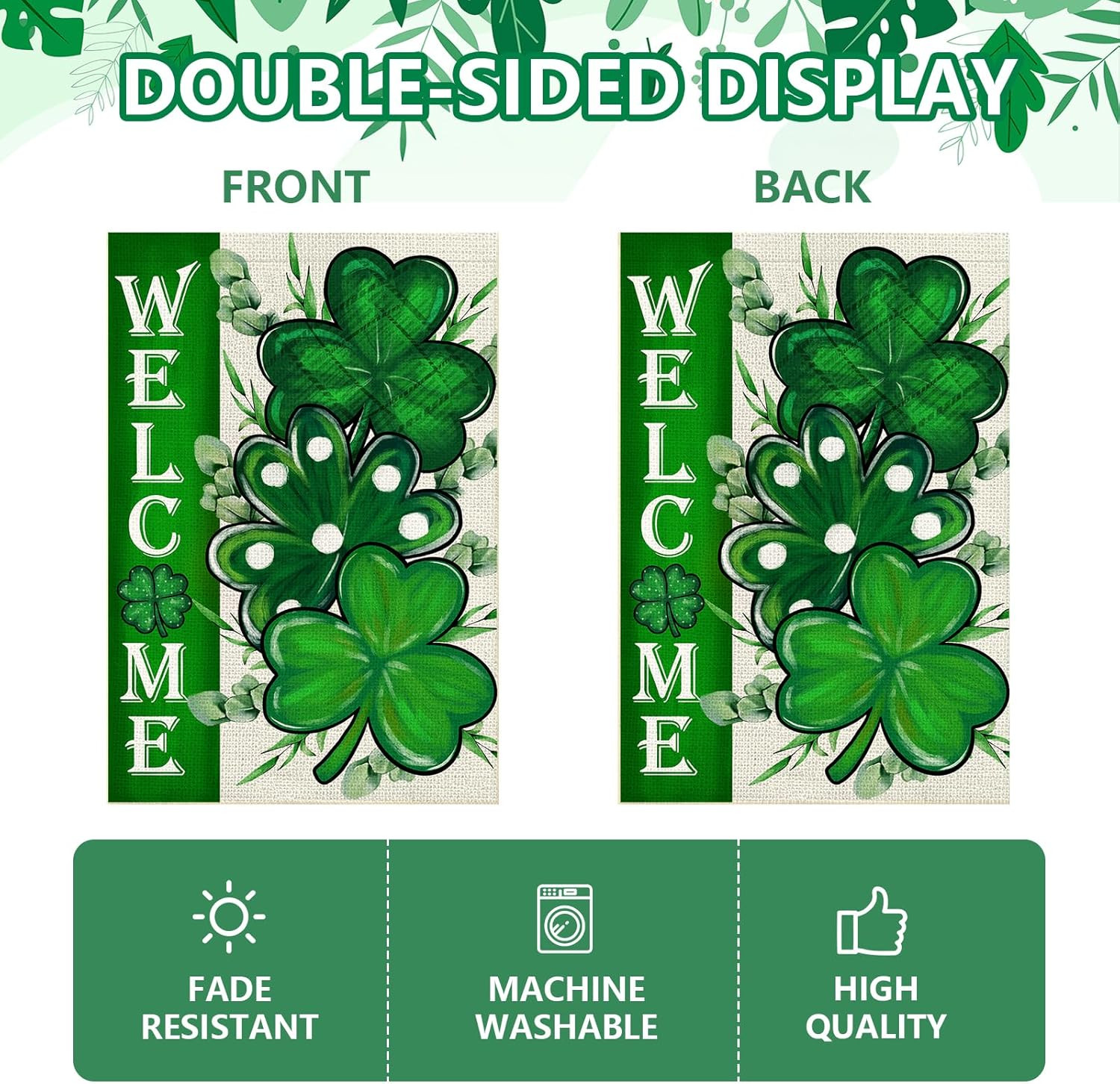 St Patricks Day Shamrocks Garden Flag 12X18 Inch, Double Sided Green Clovers Wel