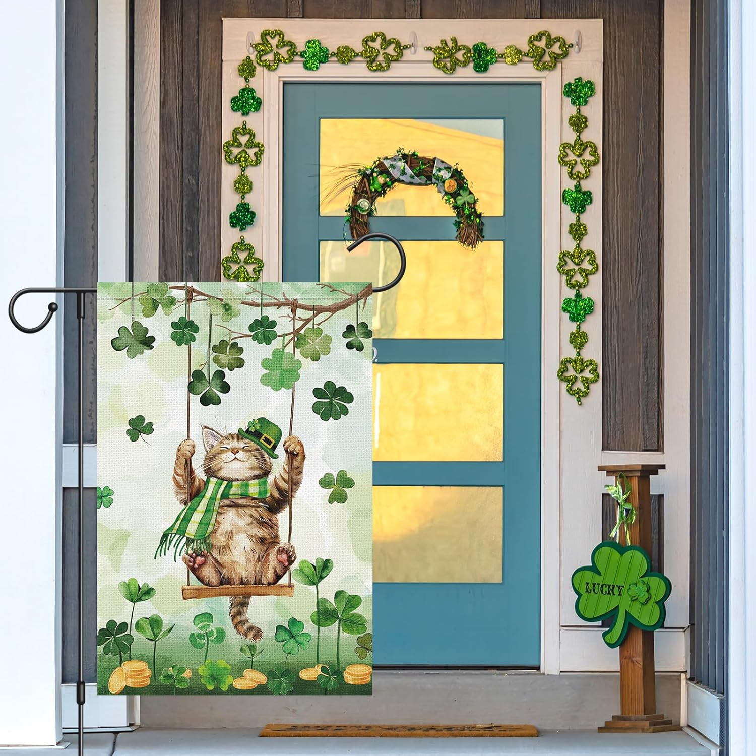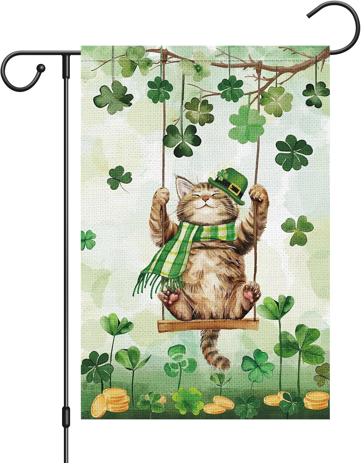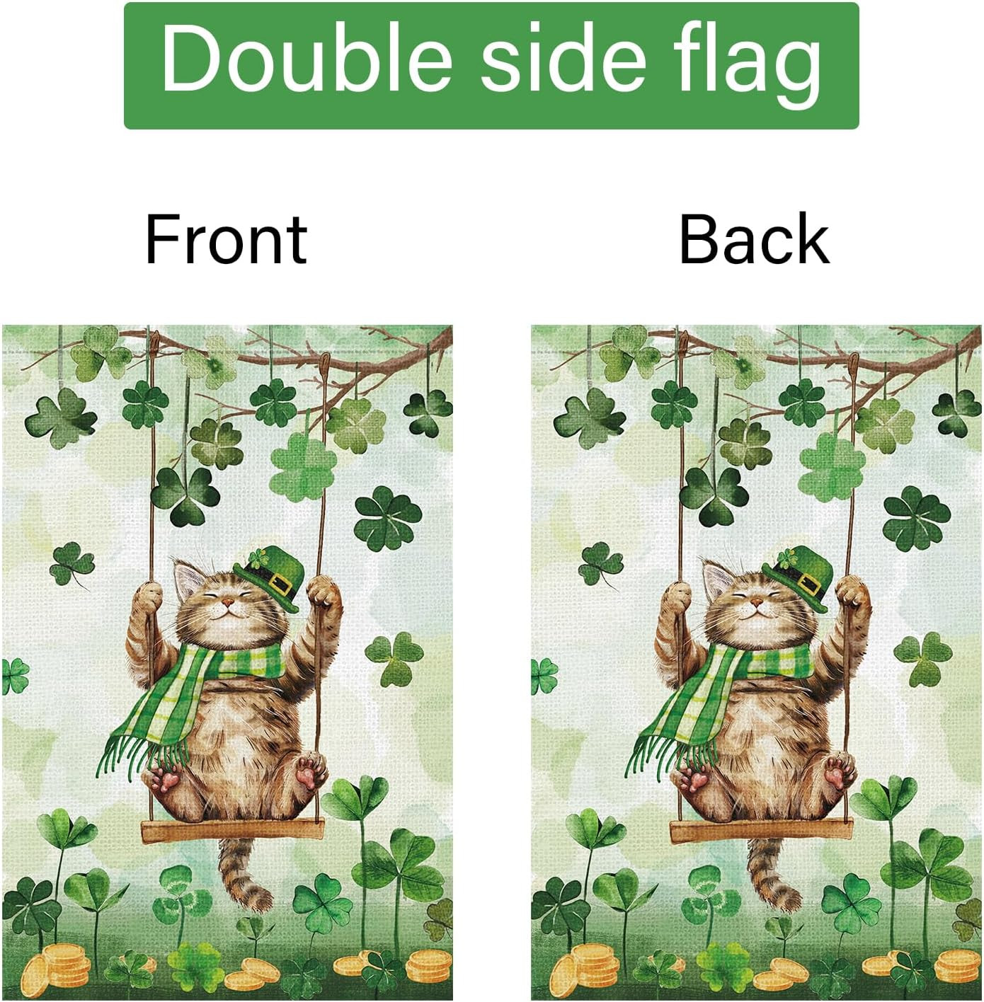 как выглядит St Patricks Day Garden Flag Cat Shamrock Double Sided 12X18 Inch Welcome Small B фото