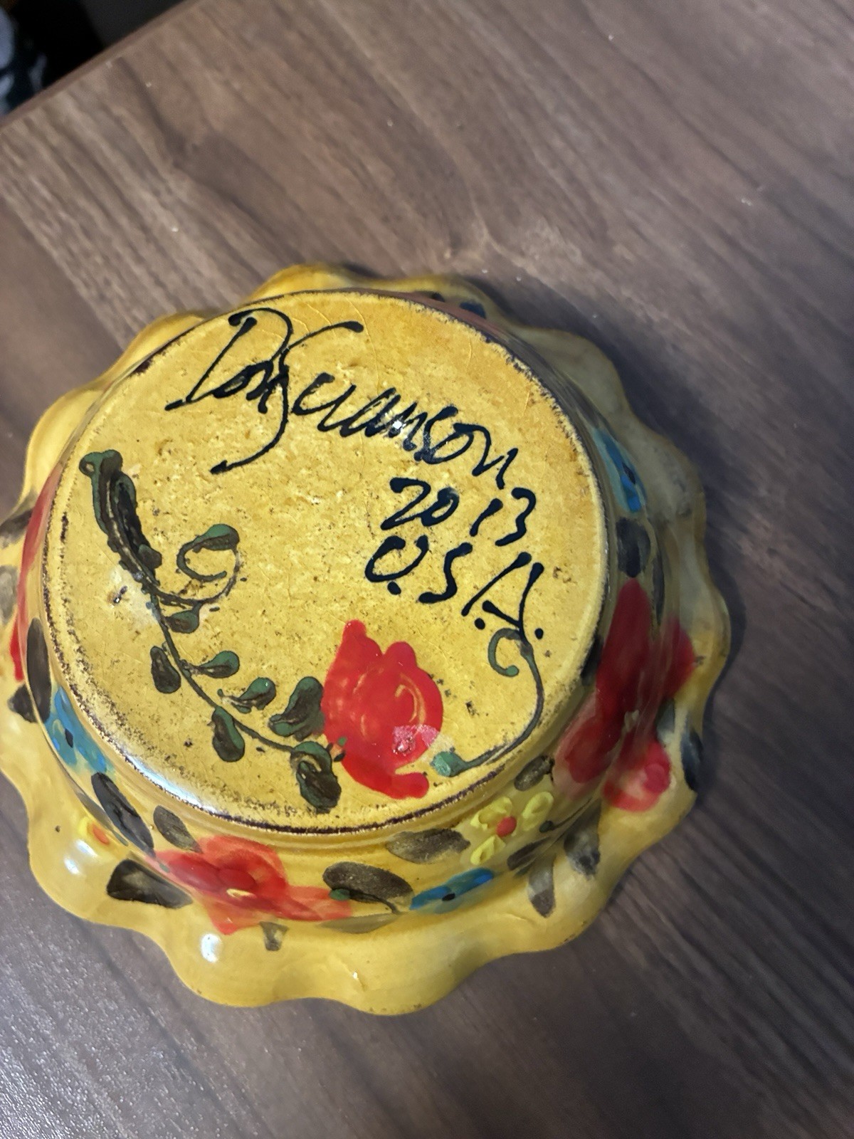как выглядит Don Swanson Floral Hand Painted Bowl Signed Dated 2013 USA Folk Art Pottery фото