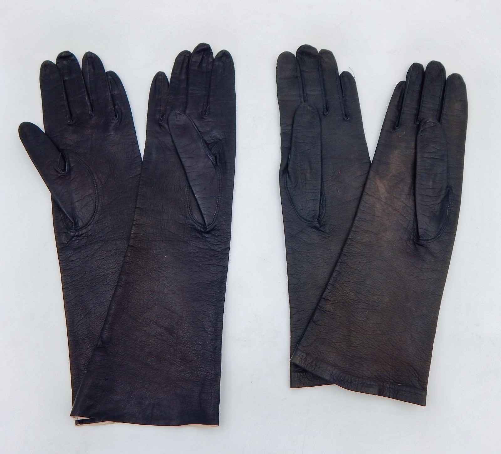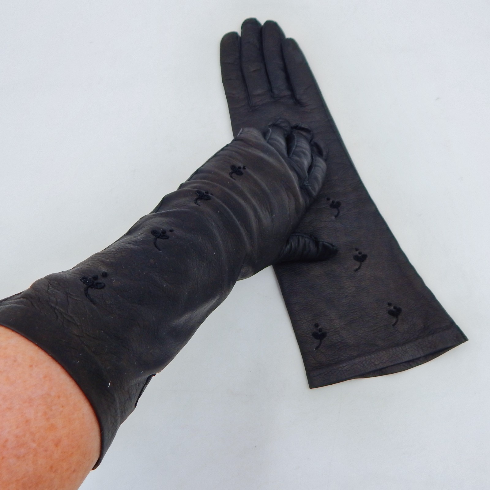 как выглядит Leather Opera Formal Long Gloves Pair Black Germany Italy Size Small Embroidered фото